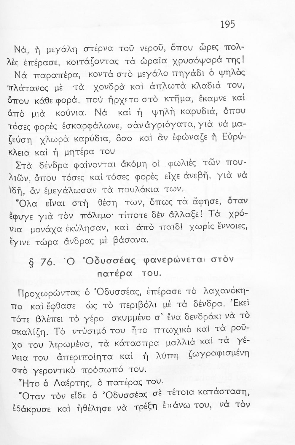 Παρουσίαση περιεχομένου: Αναγνωστικό Γ ' Δημοτικού το οποίο παρουσιάζει το ταξίδι του Οδυσσέα προς την Ιθάκη. Στο τέλος το βιβλίο περιλαμβάνει σειρά από δημοτικά ποιήματα τα οποία εκπέμπουν μηνύματα γυρισμού και ξενιτιάς.