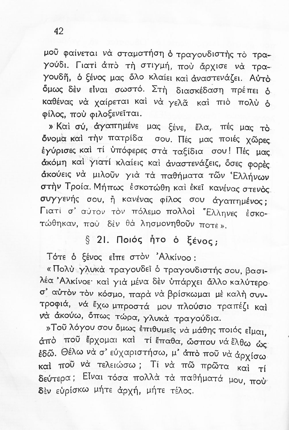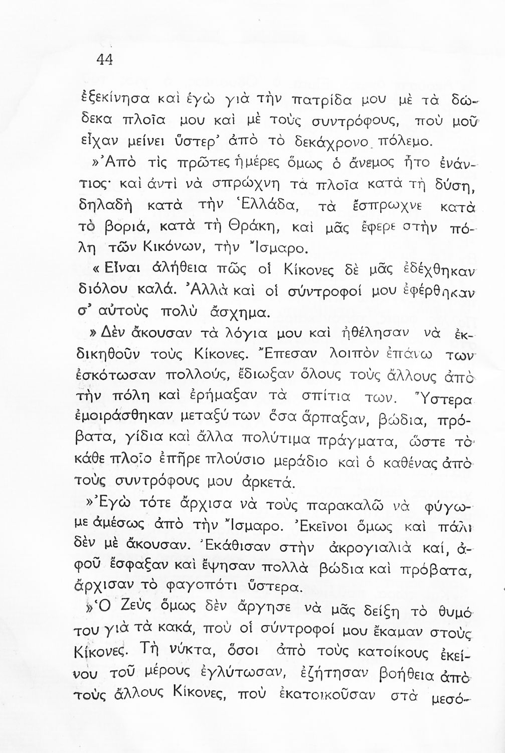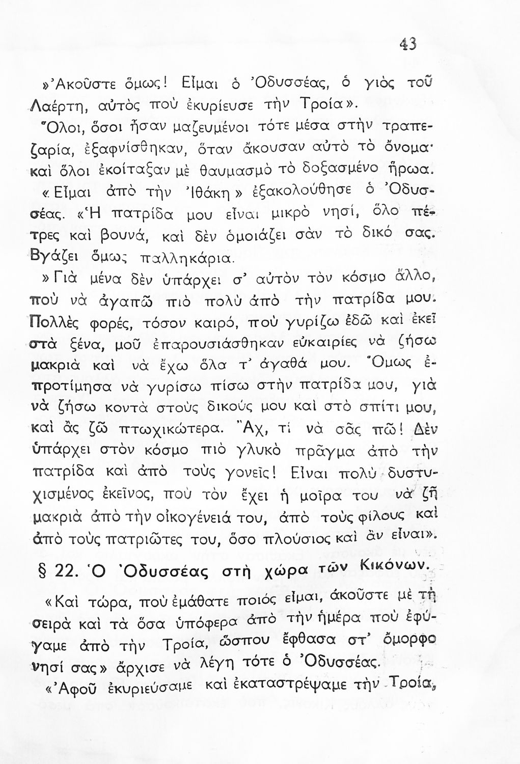 Παρουσίαση περιεχομένου: Αναγνωστικό Γ ' Δημοτικού το οποίο παρουσιάζει το ταξίδι του Οδυσσέα προς την Ιθάκη. Στο τέλος το βιβλίο περιλαμβάνει σειρά από δημοτικά ποιήματα τα οποία εκπέμπουν μηνύματα γυρισμού και ξενιτιάς.