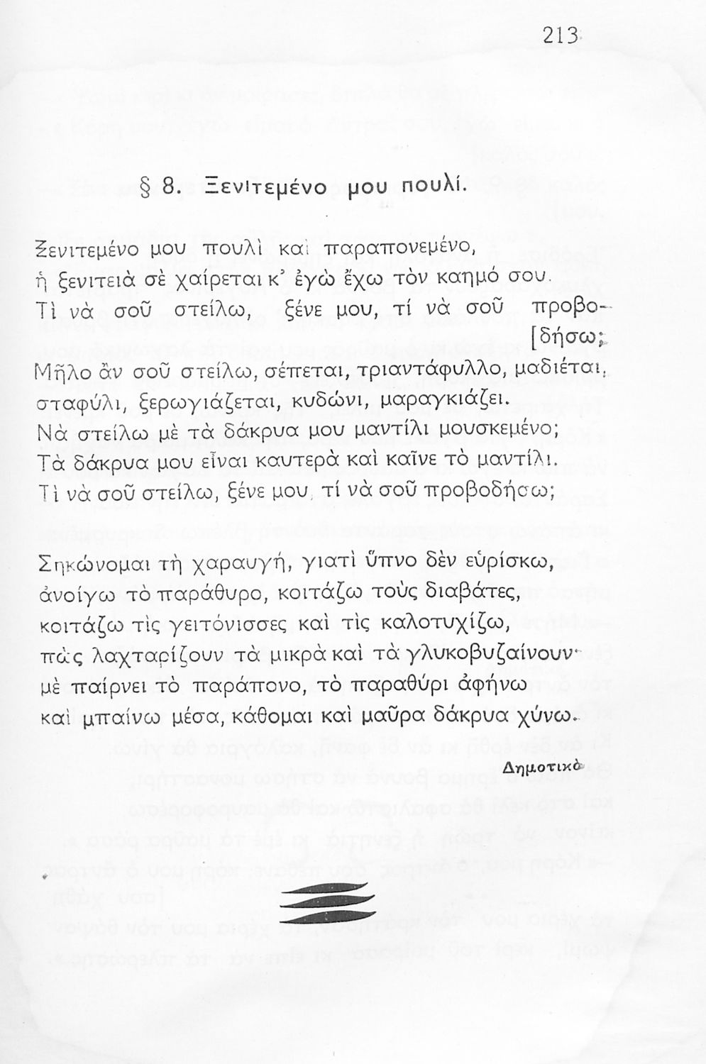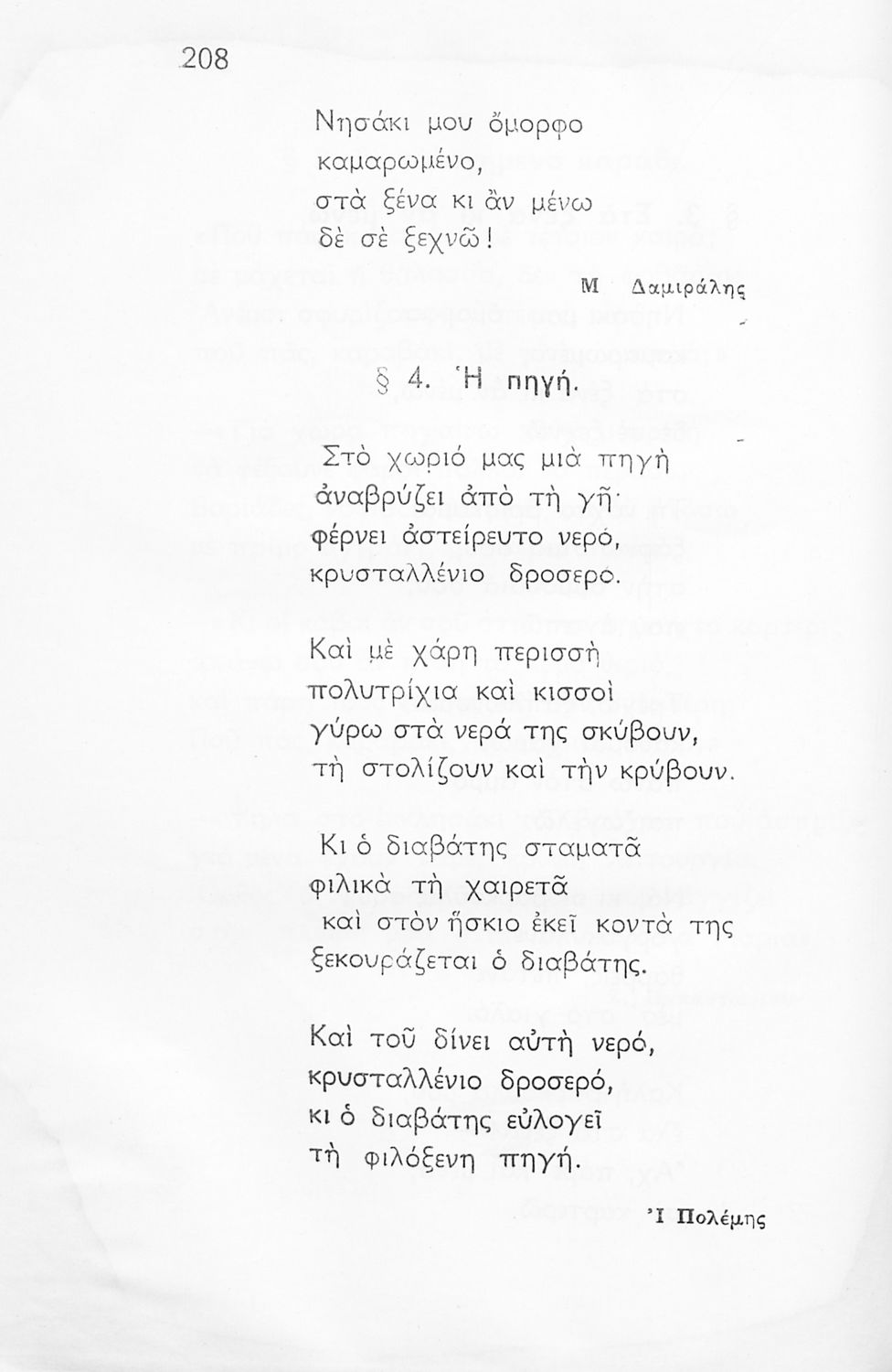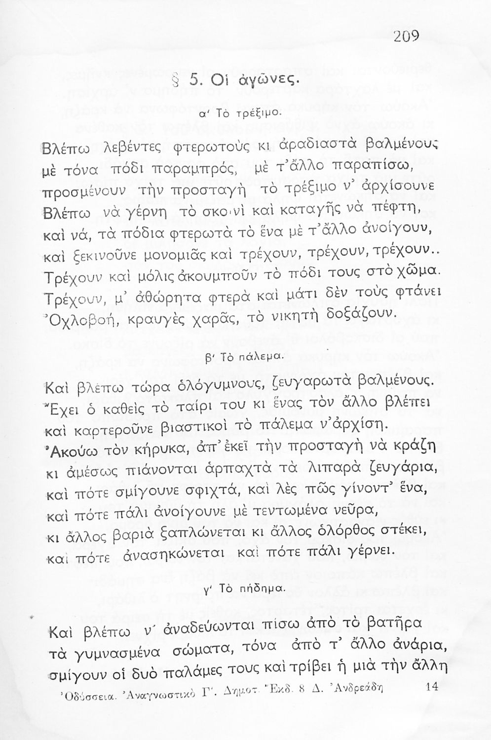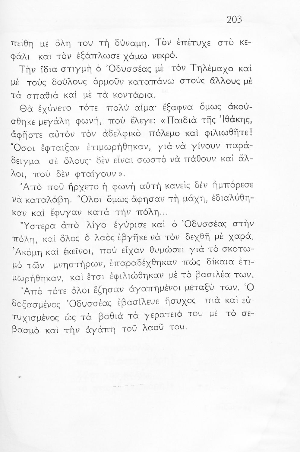 Βαθμίδα εκπαίδευσης: Πρωτοβάθμια Τάξη: Γ' Δημοτικού Μάθημα: Νέα Ελληνικά Γλώσσα: Δημοτική με στοιχεία καθαρεύουσας Παρουσίαση περιεχομένου: Αναγνωστικό Γ ' Δημοτικού το οποίο παρουσιάζει το ταξίδι του Οδυσσέα προς την Ιθάκη. Στο τέλος το βιβλίο περιλαμβάνει σειρά από δημοτικά ποιήματα τα οποία εκπέμπουν μηνύματα γυρισμού και ξενιτιάς. |