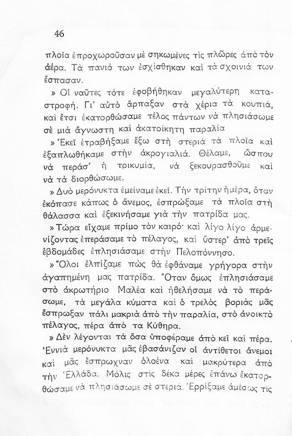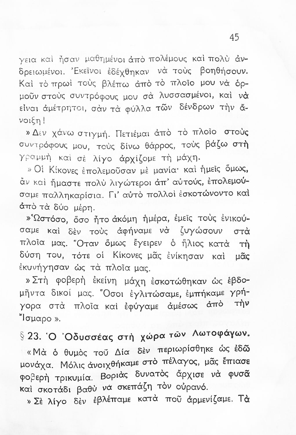 Παρουσίαση περιεχομένου: Αναγνωστικό Γ ' Δημοτικού το οποίο παρουσιάζει το ταξίδι του Οδυσσέα προς την Ιθάκη. Στο τέλος το βιβλίο περιλαμβάνει σειρά από δημοτικά ποιήματα τα οποία εκπέμπουν μηνύματα γυρισμού και ξενιτιάς.