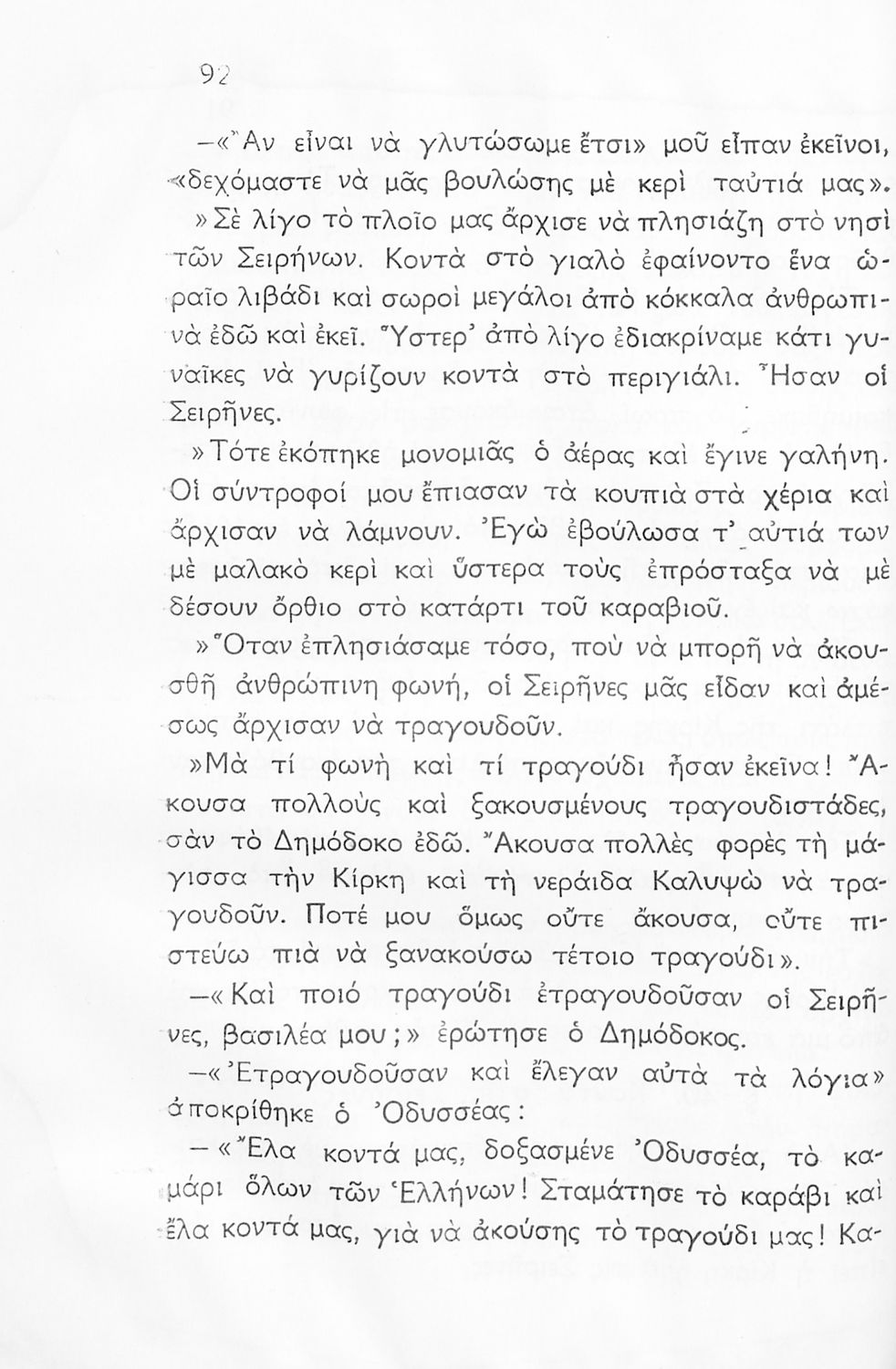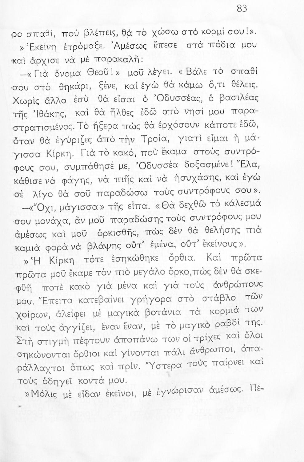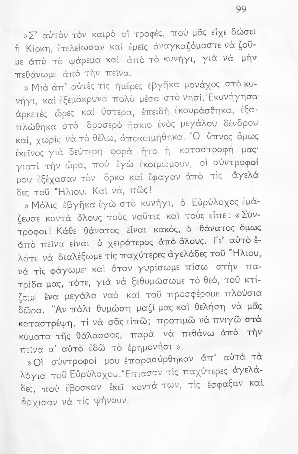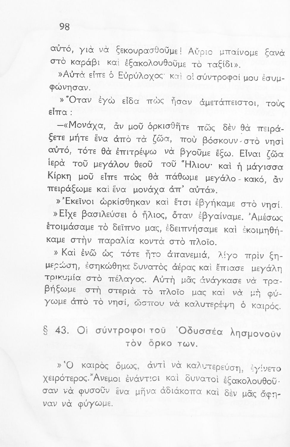 Βαθμίδα εκπαίδευσης: Πρωτοβάθμια Τάξη: Γ' Δημοτικού Μάθημα: Νέα Ελληνικά Γλώσσα: Δημοτική με στοιχεία καθαρεύουσας Παρουσίαση περιεχομένου: Αναγνωστικό Γ ' Δημοτικού το οποίο παρουσιάζει το ταξίδι του Οδυσσέα προς την Ιθάκη. Στο τέλος το βιβλίο περιλαμβάνει σειρά από δημοτικά ποιήματα τα οποία εκπέμπουν μηνύματα γυρισμού και ξενιτιάς. |