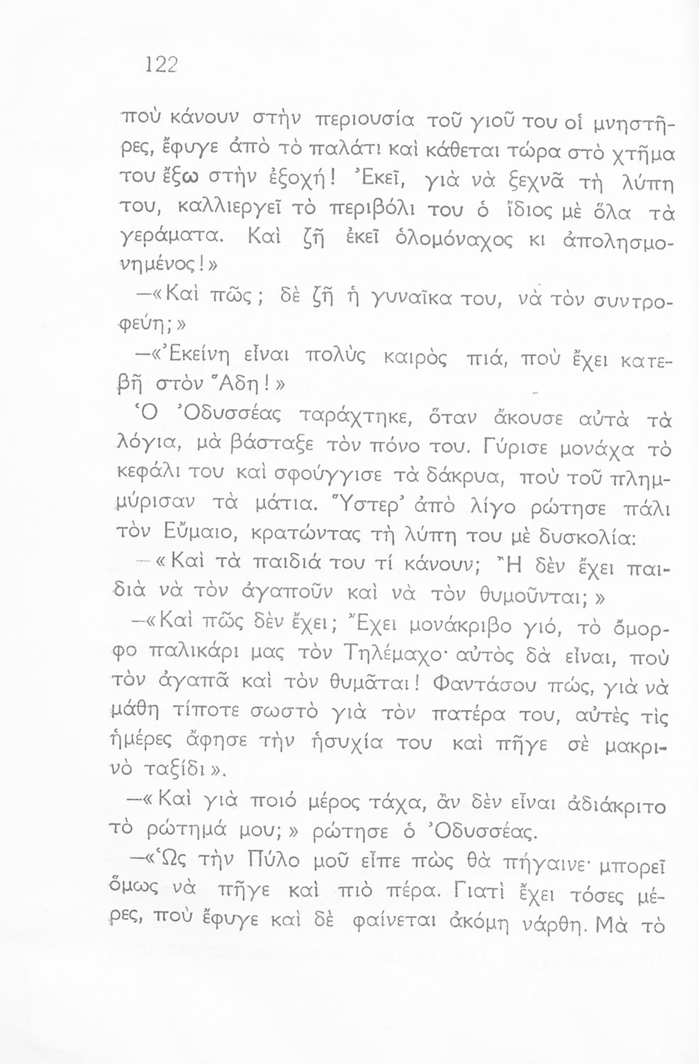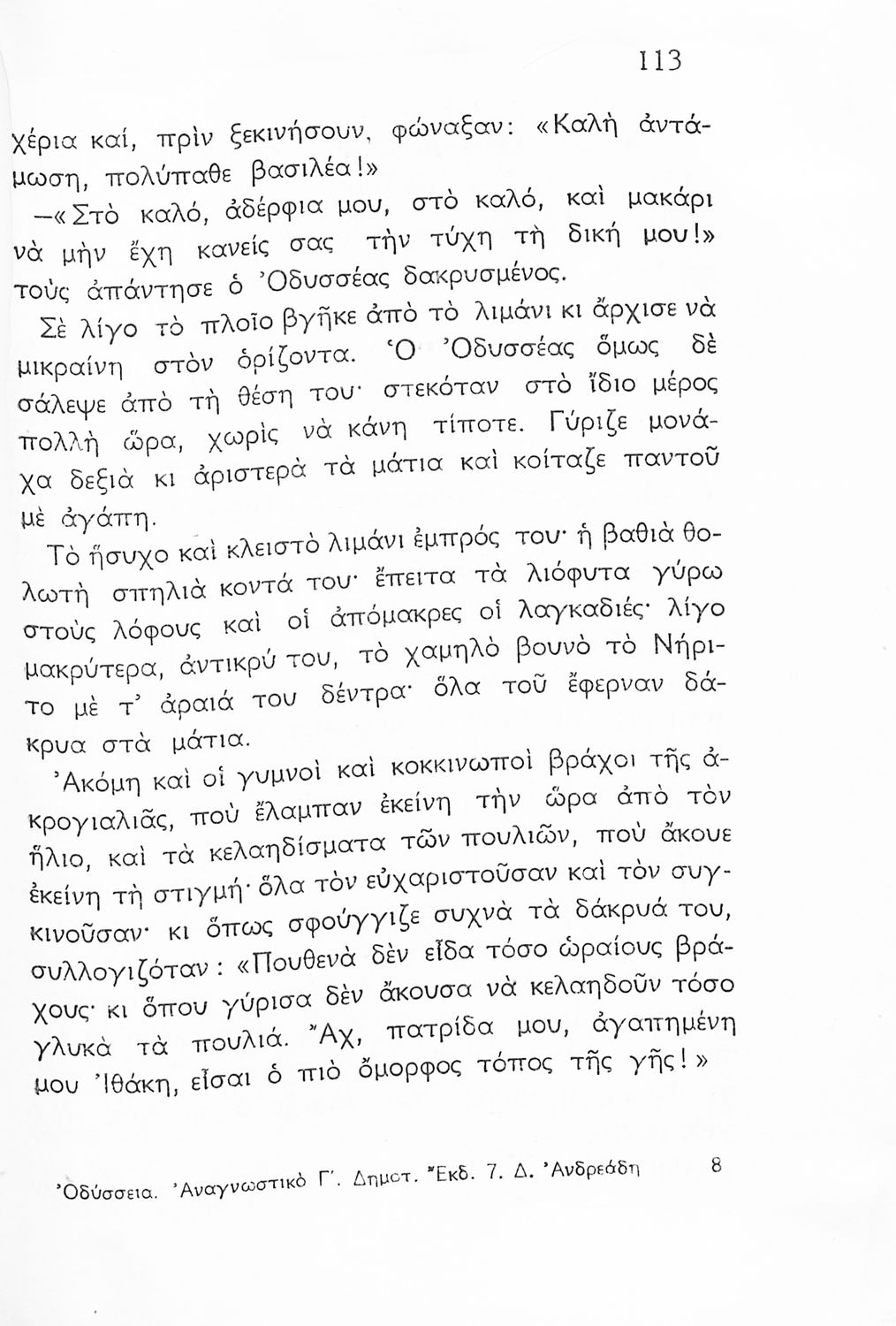 Αναγνωστικό Γ ' Δημοτικού το οποίο παρουσιάζει το ταξίδι του Οδυσσέα προς την Ιθάκη. Στο τέλος το βιβλίο περιλαμβάνει σειρά από δημοτικά ποιήματα τα οποία εκπέμπουν μηνύματα γυρισμού και ξενιτιάς.