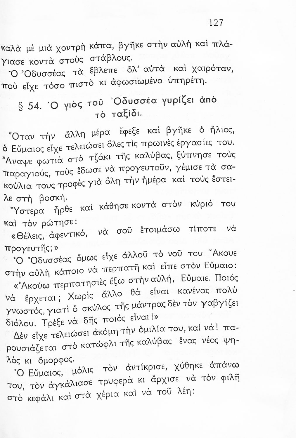 Αναγνωστικό Γ ' Δημοτικού το οποίο παρουσιάζει το ταξίδι του Οδυσσέα προς την Ιθάκη. Στο τέλος το βιβλίο περιλαμβάνει σειρά από δημοτικά ποιήματα τα οποία εκπέμπουν μηνύματα γυρισμού και ξενιτιάς.