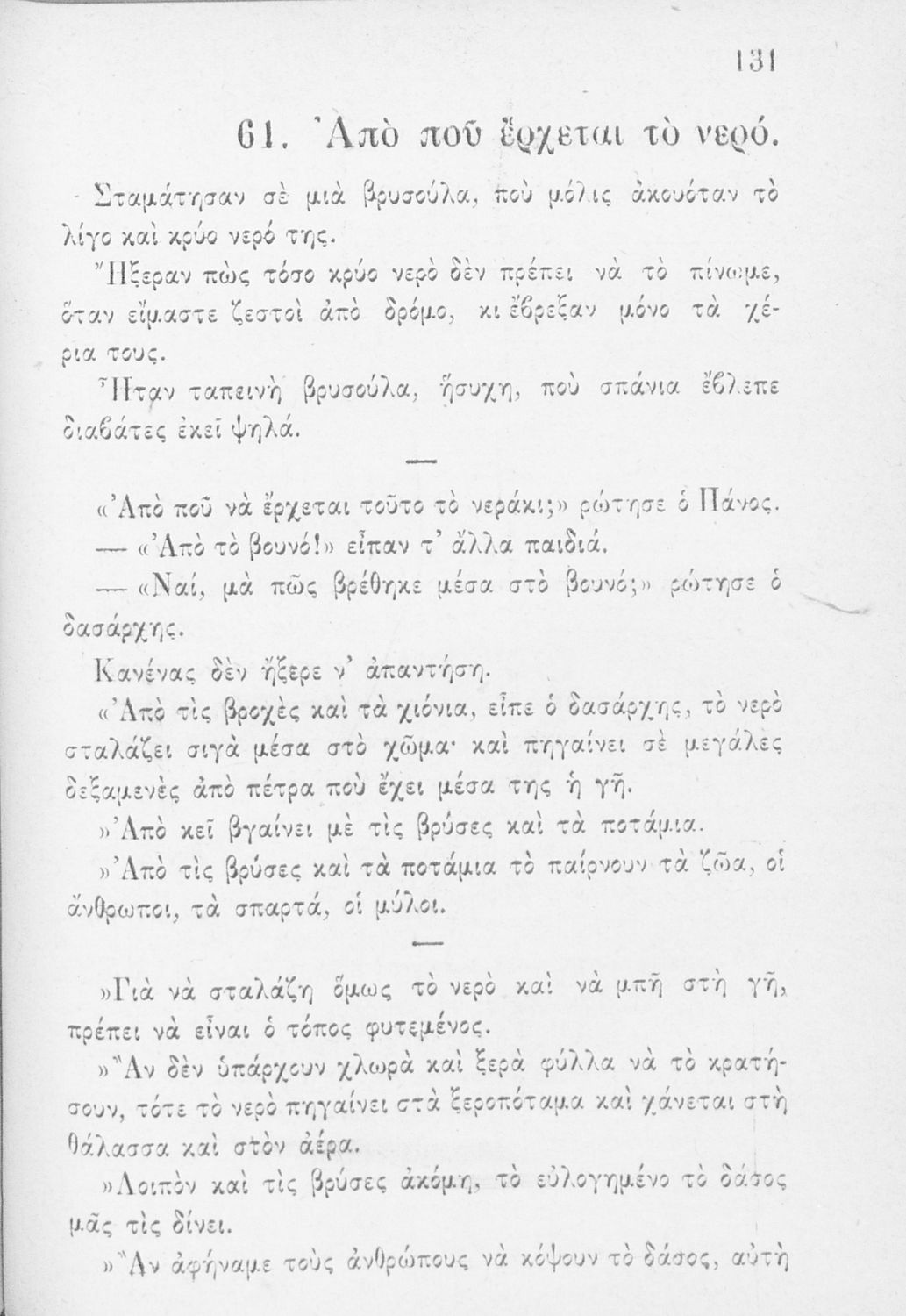 Αναγνωστικό Γ΄ Δημοτικού που περιλαμβάνει ποιήματα και πεζά με θέματα όπως η καλή και κακή συναναστροφή, η φρόνηση, η οκνηρία, η φιλανθρωπία και η πίστη στο Θεό
