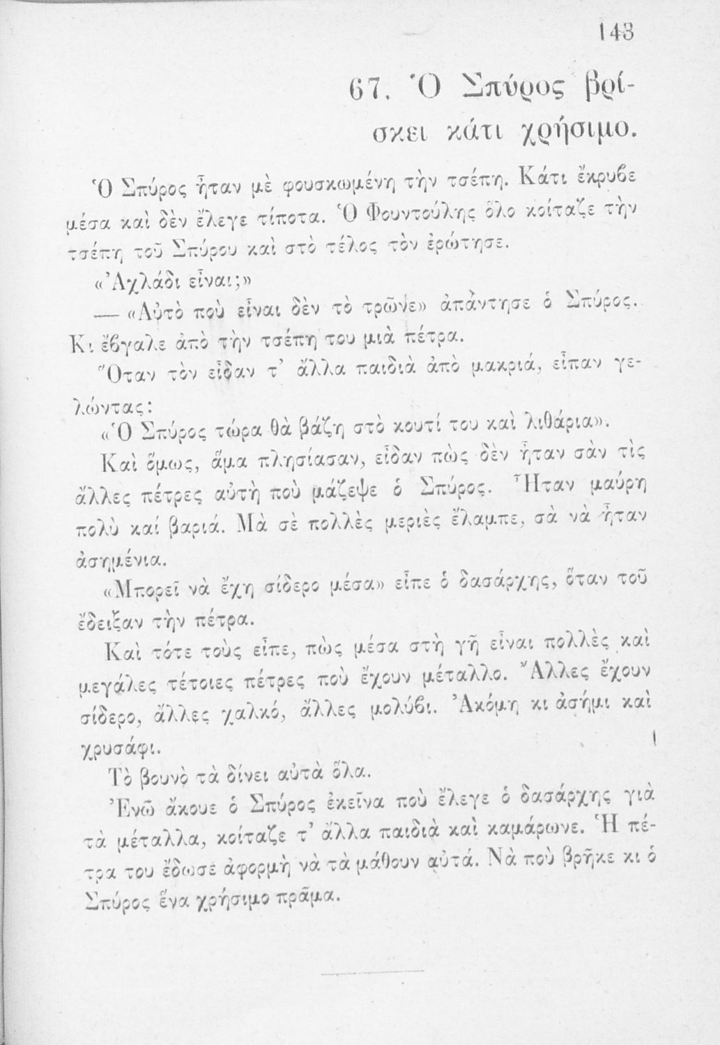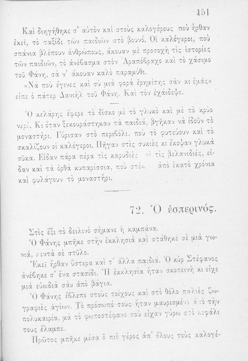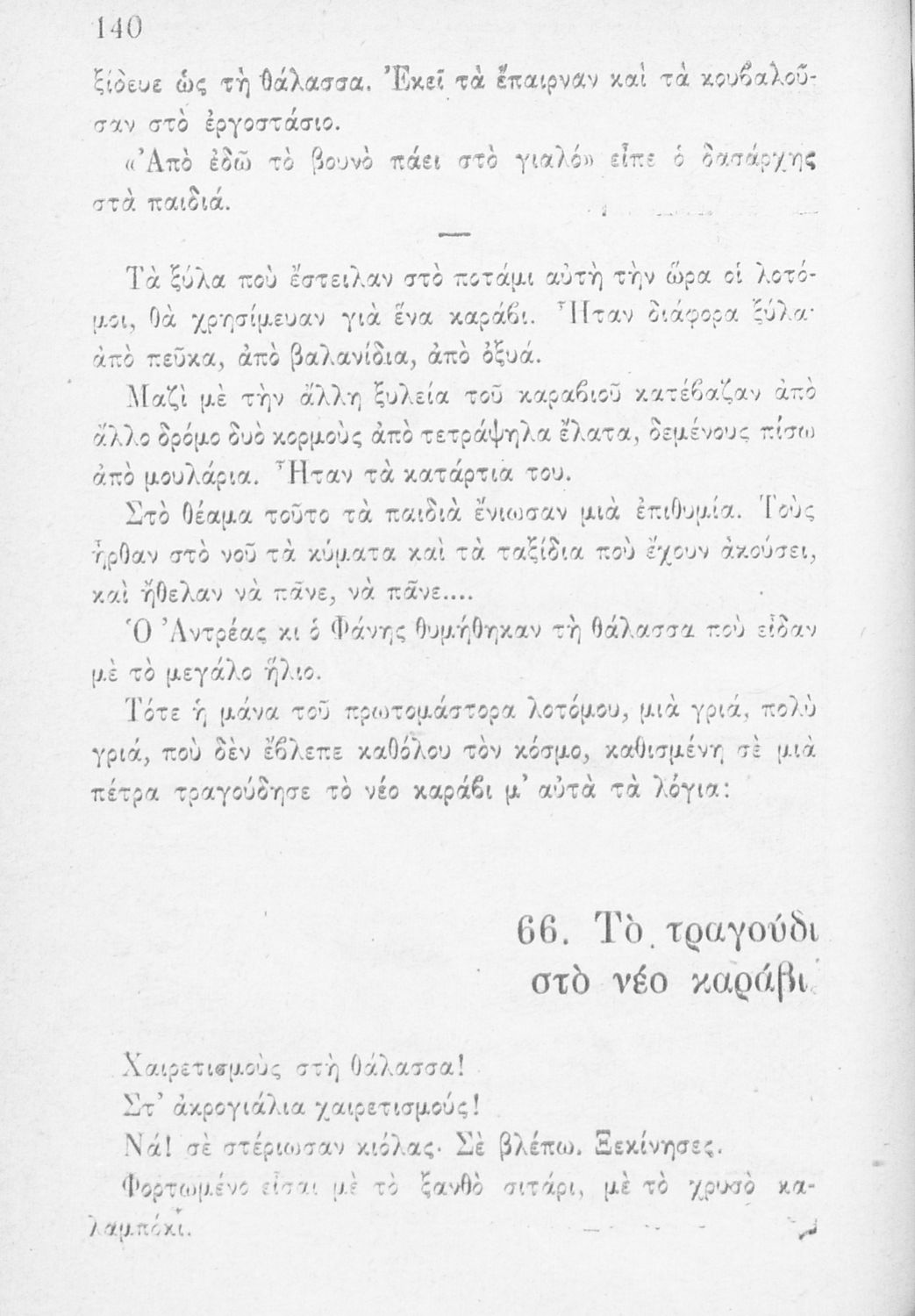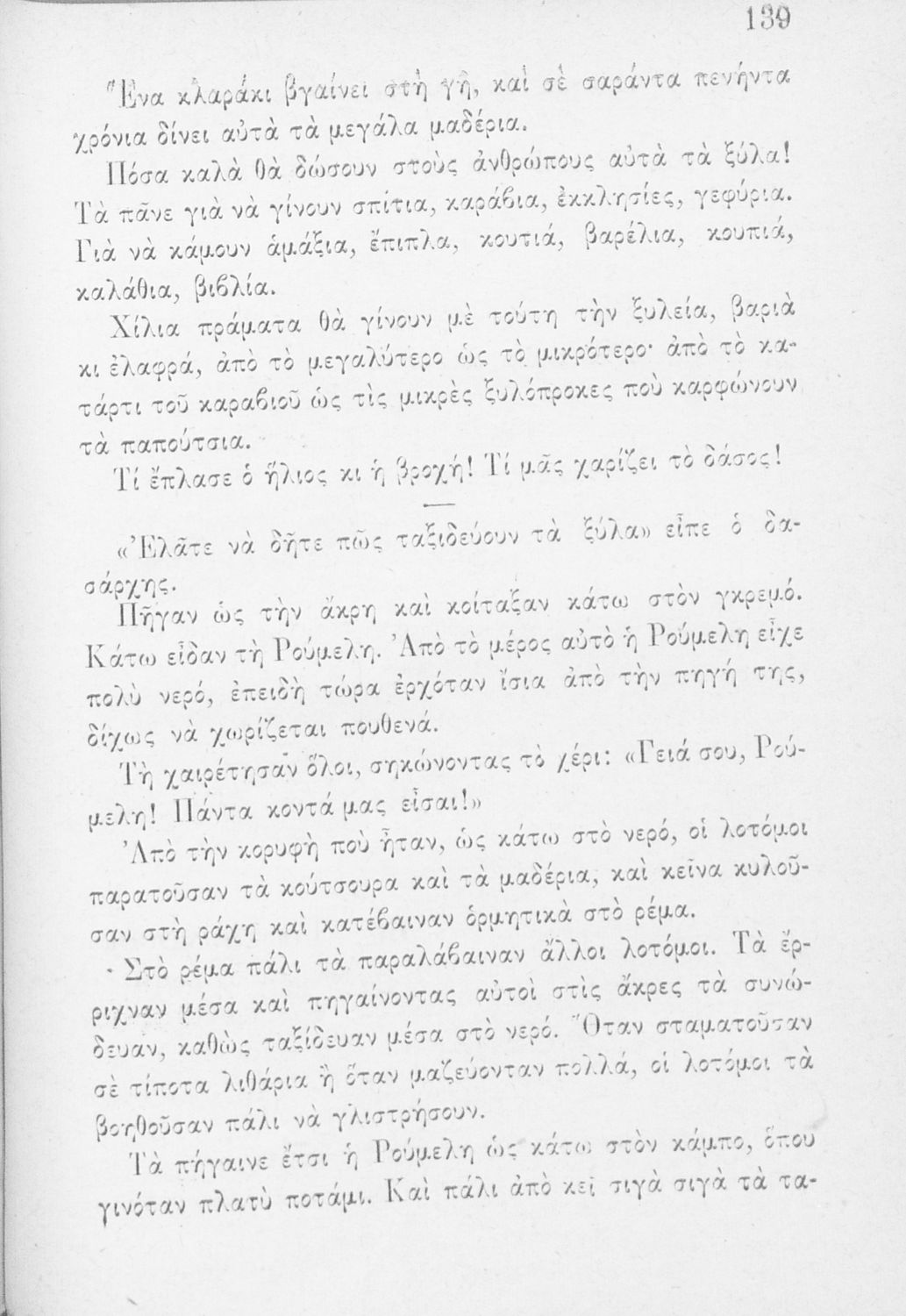 Το εγχειρίδιο ήταν αναγνωστικό για την Γ΄ Δημοτικού. Περιλαμβάνει μια αφηγηματική ιστορία, η οποία εμπεριέχει ηθικά διδάγματα για την ηθικοπλαστική καλλιέργεια των μαθητών. Η γλώσσα είναι δημοτική και το ύφος απλό. Στο παράρτημα περιλαμβάνει ποιήματα και τραγούδια.