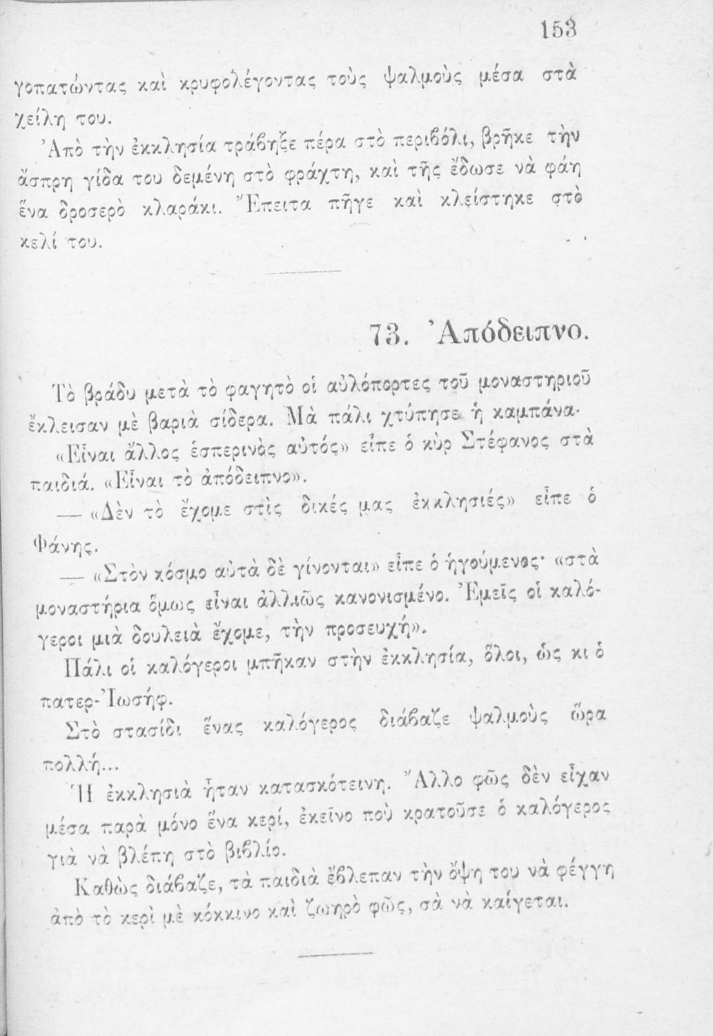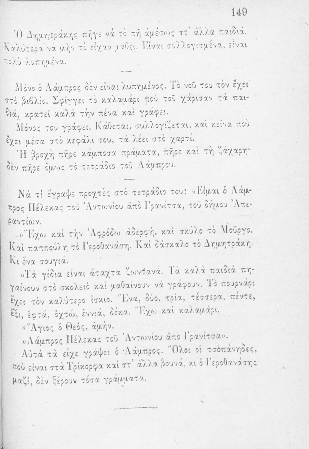 Αναγνωστικό Γ΄ Δημοτικού που περιλαμβάνει ποιήματα και πεζά με θέματα όπως η καλή και κακή συναναστροφή, η φρόνηση, η οκνηρία, η φιλανθρωπία και η πίστη στο Θεό