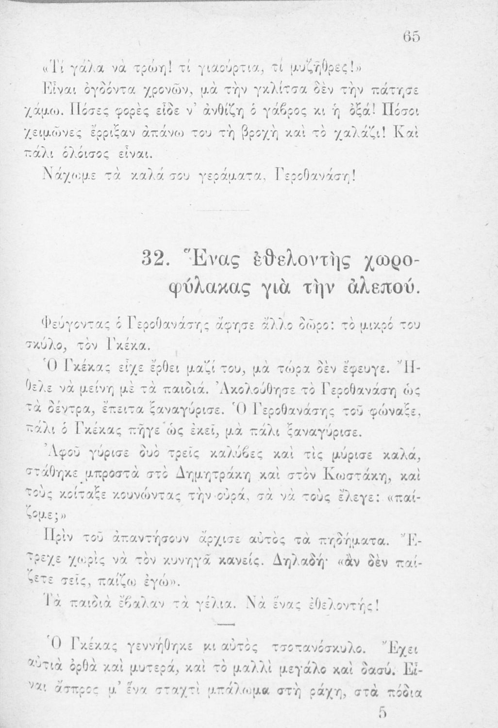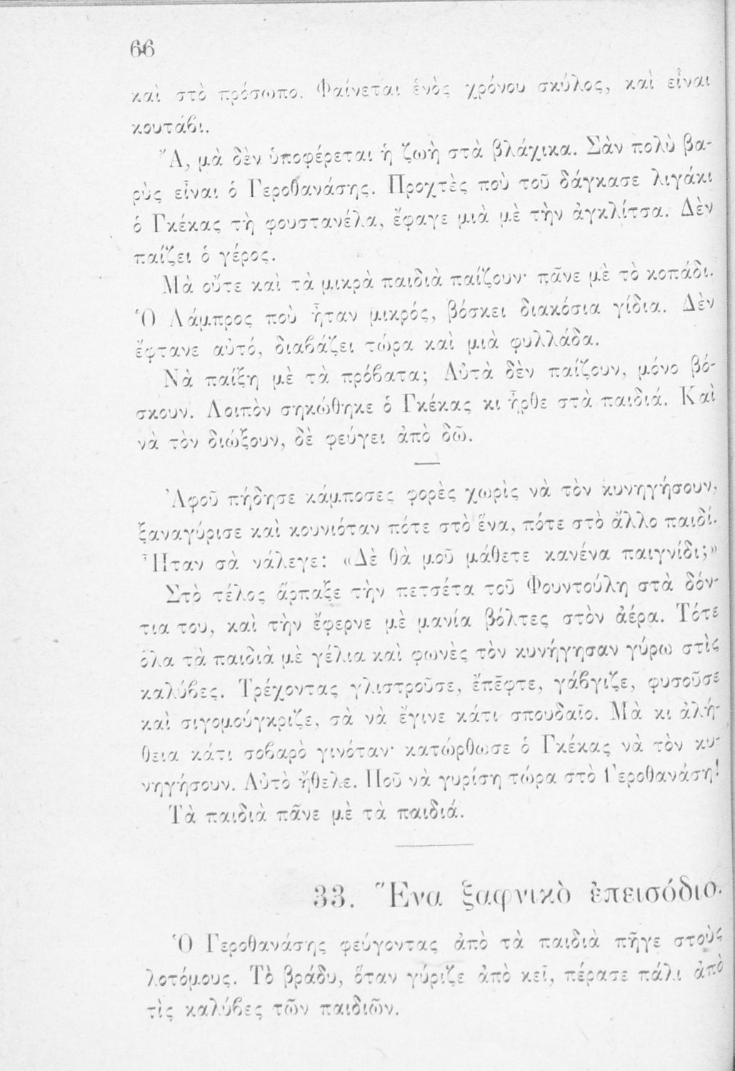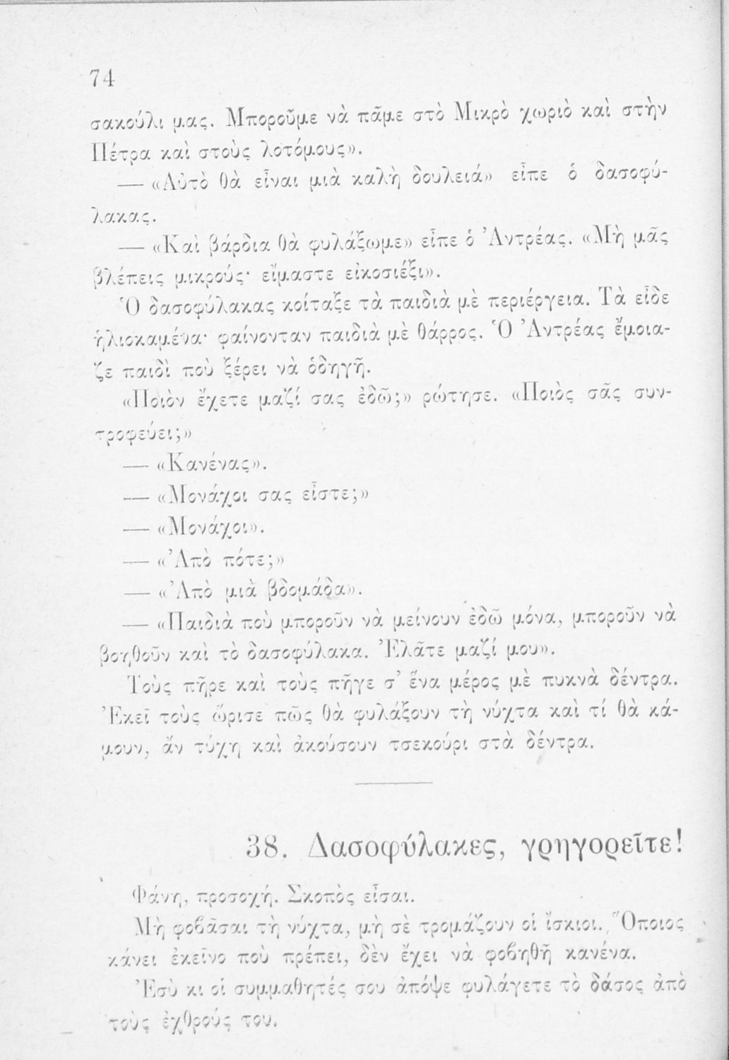 Το εγχειρίδιο ήταν αναγνωστικό για την Γ΄ Δημοτικού. Περιλαμβάνει μια αφηγηματική ιστορία, η οποία εμπεριέχει ηθικά διδάγματα για την ηθικοπλαστική καλλιέργεια των μαθητών. Η γλώσσα είναι δημοτική και το ύφος απλό. Στο παράρτημα περιλαμβάνει ποιήματα και τραγούδια.