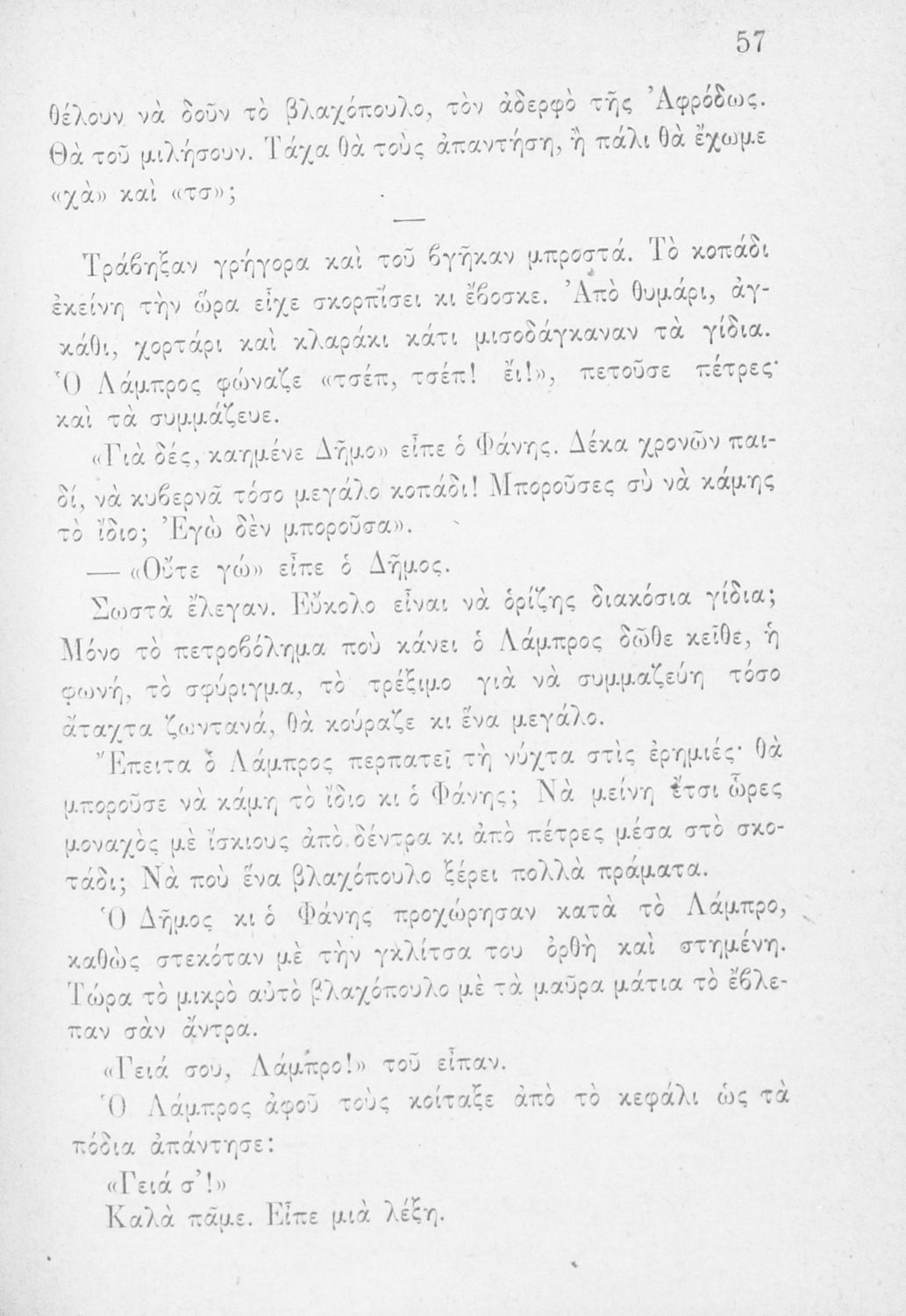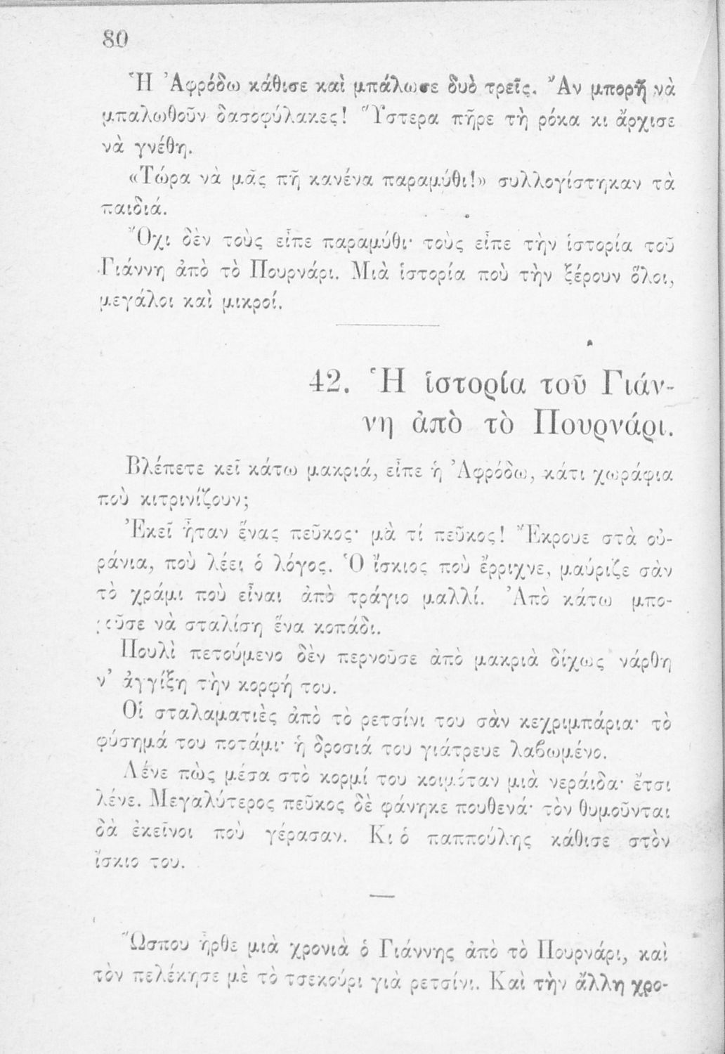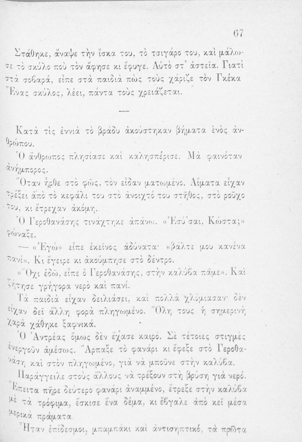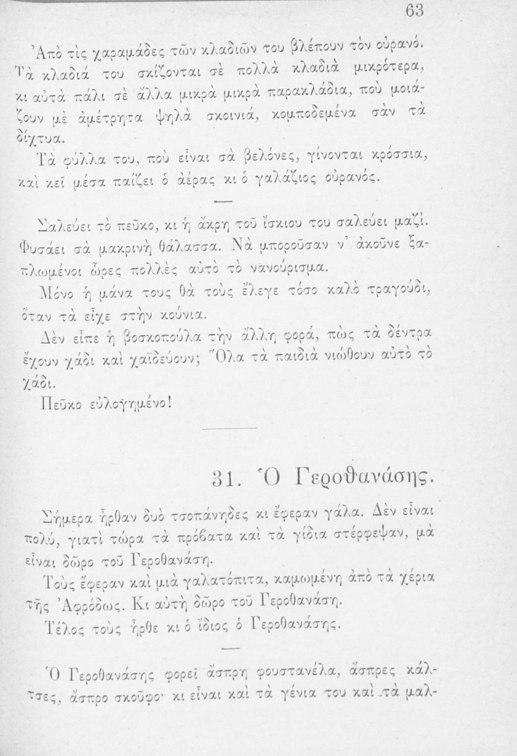 Το εγχειρίδιο ήταν αναγνωστικό για την Γ΄ Δημοτικού. Περιλαμβάνει μια αφηγηματική ιστορία, η οποία εμπεριέχει ηθικά διδάγματα για την ηθικοπλαστική καλλιέργεια των μαθητών. Η γλώσσα είναι δημοτική και το ύφος απλό. Στο παράρτημα περιλαμβάνει ποιήματα και τραγούδια.