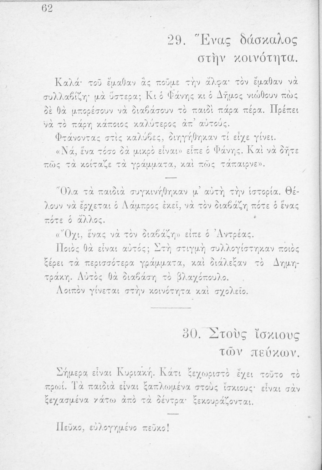 Αναγνωστικό Γ΄ Δημοτικού που αποτελεί τομή στην ιστορία της νεοελληνικής εκπαίδευσης και σταθμό στην εξέλιξη της ορθολογικής συγγραφής ενός σχολικού εγχειριδίου. Αναφέρεται στις παιδαγωγικές αρχές της ...