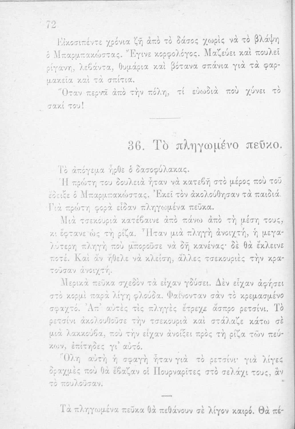 Παρουσίαση περιεχομένου: Το εγχειρίδιο ήταν αναγνωστικό για την Γ΄ Δημοτικού. Περιλαμβάνει μια αφηγηματική ιστορία, η οποία εμπεριέχει ηθικά διδάγματα για την ηθικοπλαστική καλλιέργεια των μαθητών. Η γλώσσα είναι δημοτική και το ύφος απλό. Στο παράρτημα περιλαμβάνει ποιήματα και τραγούδια.