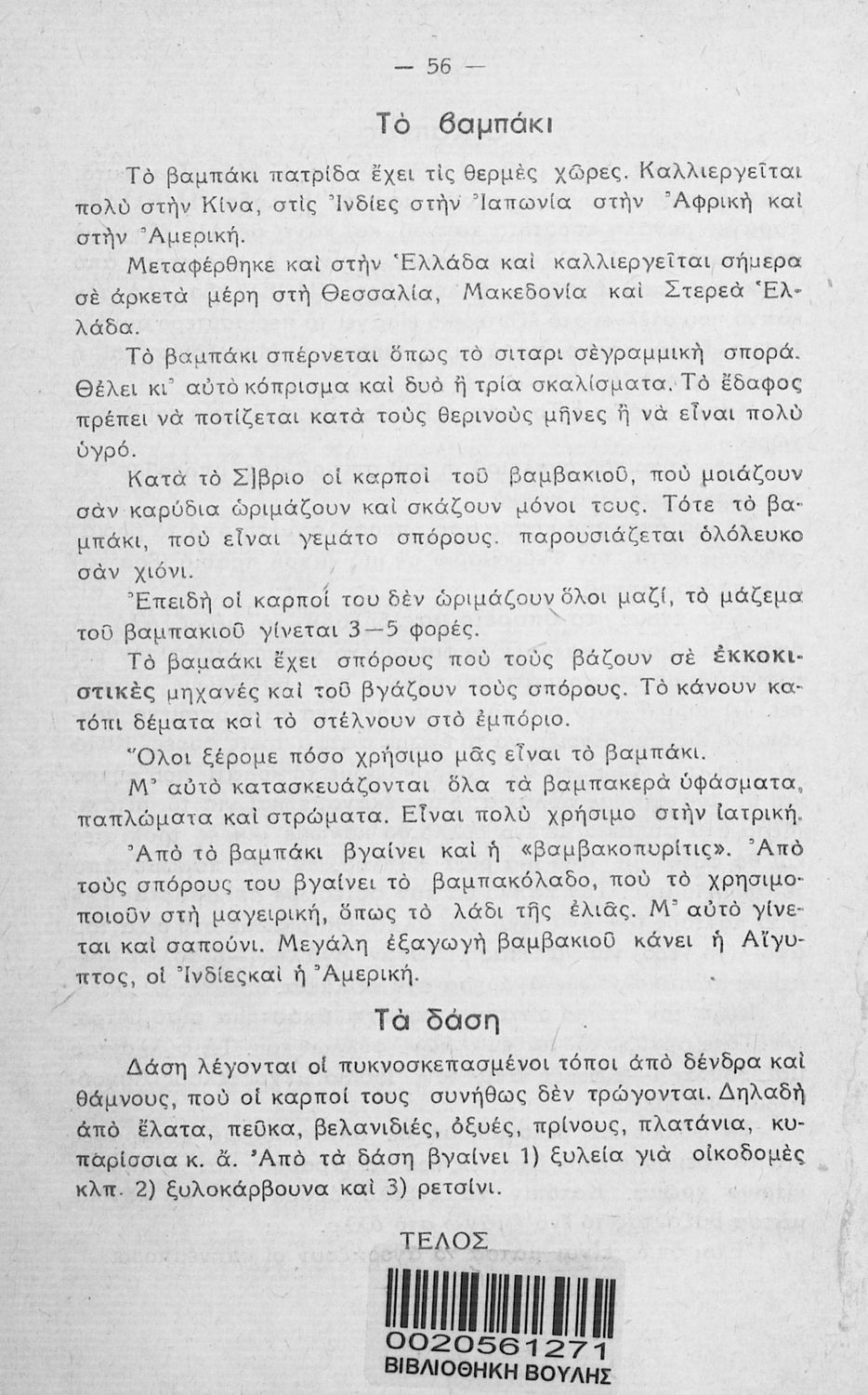 Μαθητικό βοήθημα Φυσικής Ιστορίας Ε΄ και ΣΤ΄ Δημοτικού που παρουσιάζει φυτά ανάλογα με τον τόπο που ευδοκιμούν και τη χρήση τους.