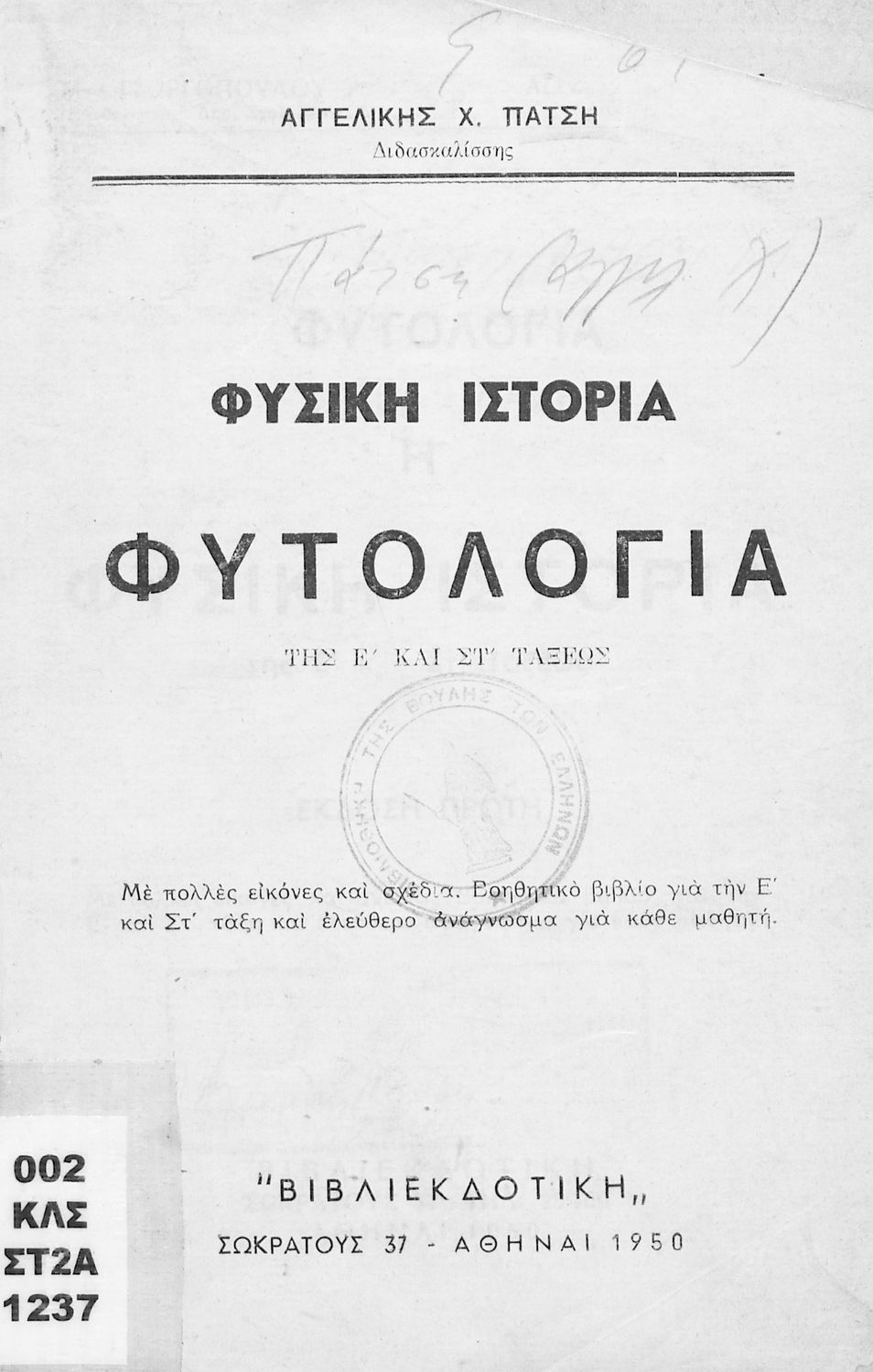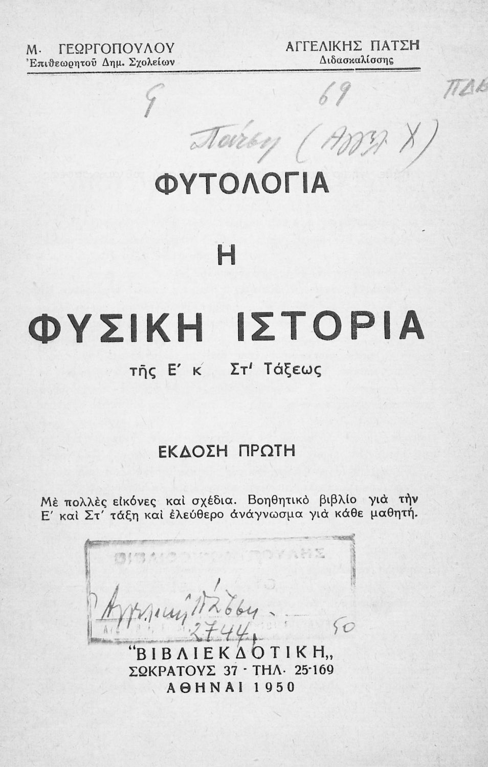 Κωδικός αναγνώρισης: 03-20561271 Τίτλος: Φυτολογία η Φυσική Ιστορία της Ε' και ΣΤ΄ Τάξεως Συγγραφέας: Μ. Γεωργόπουλος, Αγγ. Πάτση Μέγεθος και υπόστρωμα: Μαθητικό βοήθημα, μαλακό εξώφυλλο, 56 σελίδες. Σκίτσα, εικόνες (ασπρόμαυρα). |
