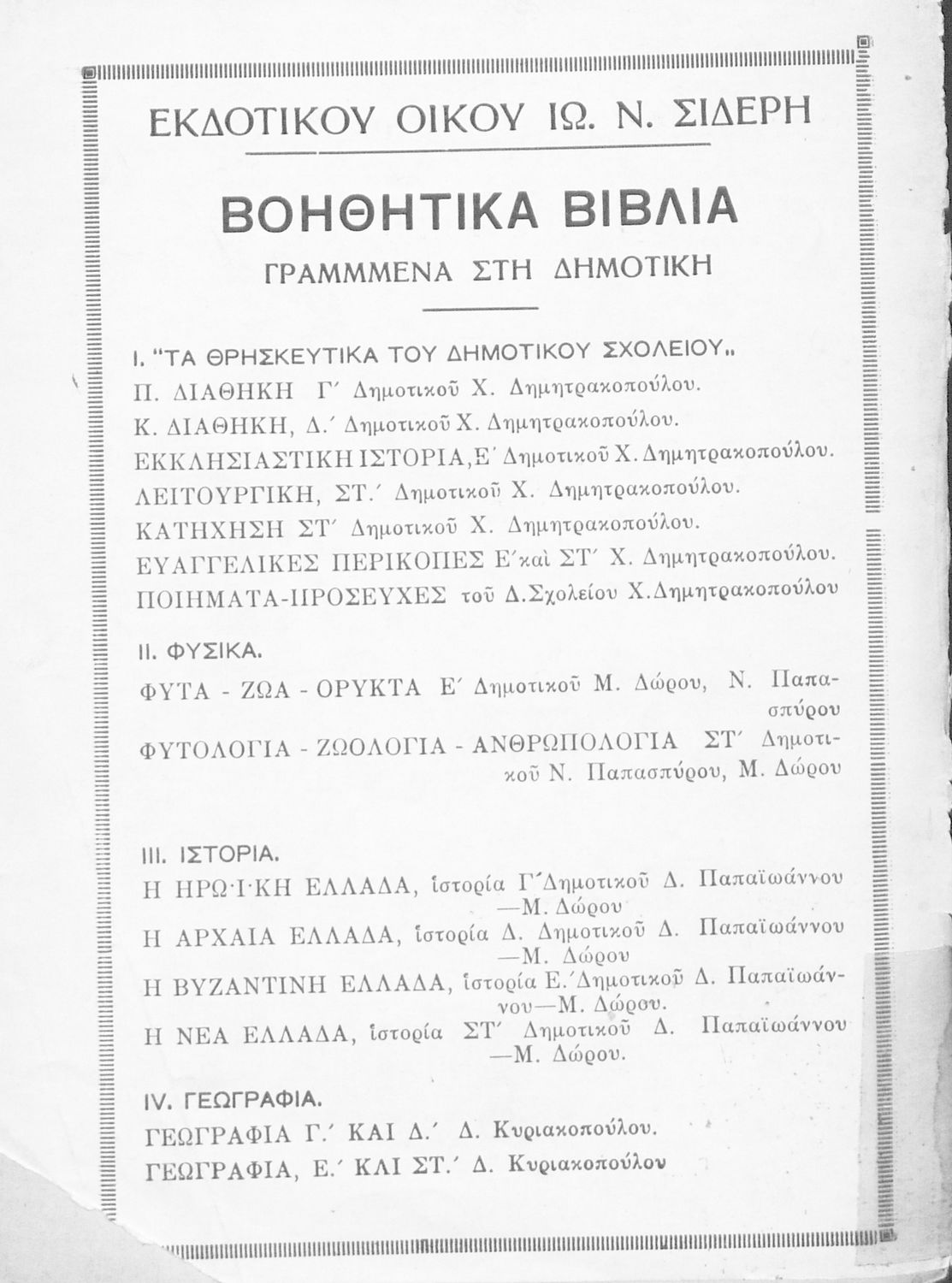 Εκδότης: Ιωάννης Ν. Σιδέρης Έτος έκδοσης: 1933 Τόπος έκδοσης: Αθήνα |