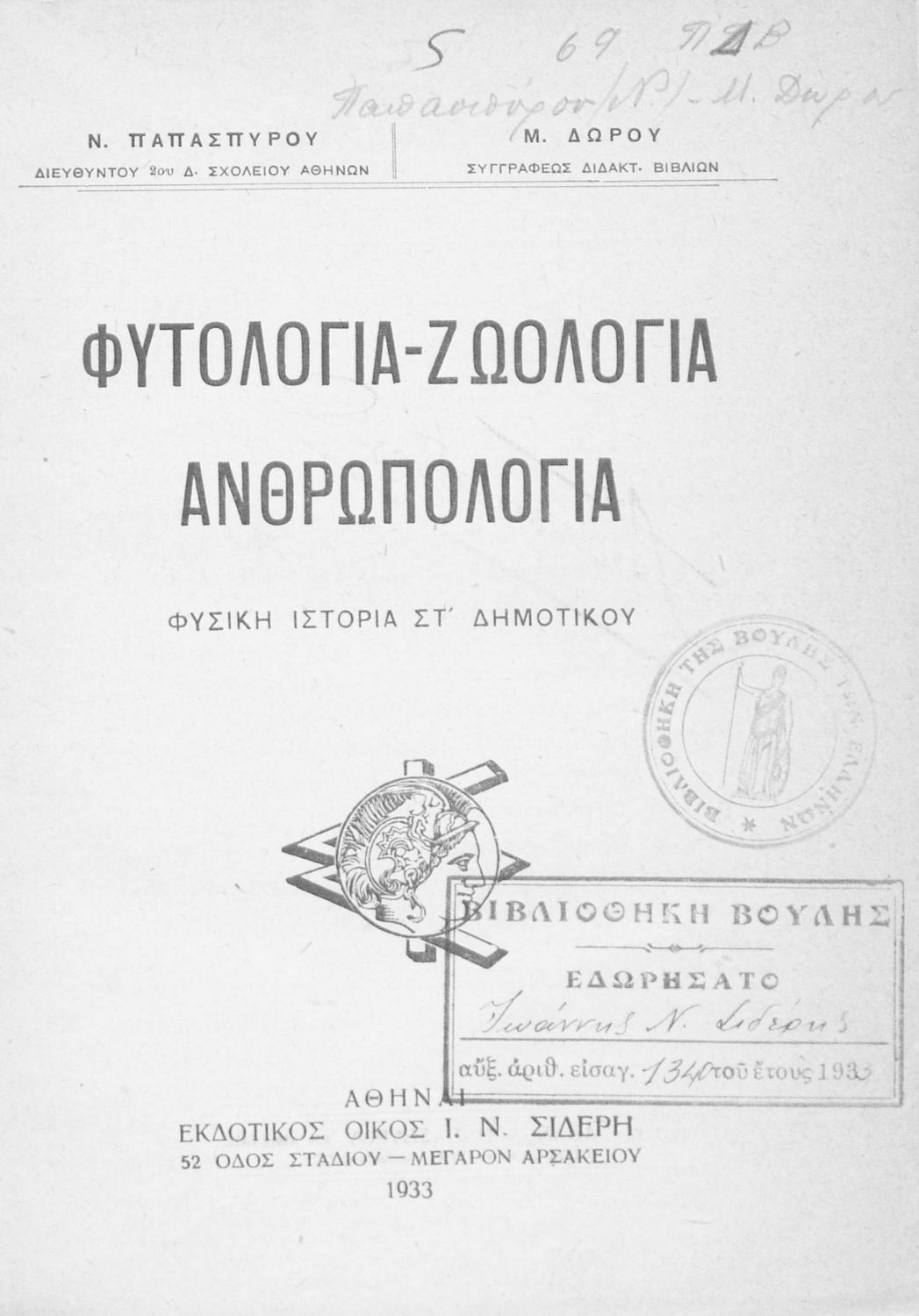 Βαθμίδα εκπαίδευσης: Πρωτοβάθμια Τάξη: ΣΤ' Δημοτικού Μάθημα: Φυτολογία, Ζωολογία, Ανθρωπολογία Γλώσσα: Δημοτική με στοιχεία καθαρεύουσας Παρουσίαση περιεχομένου: Μαθητικό βοήθημα Φυτολογίας, Ζωολογίας και Ανθρωπολογία ΣΤ΄ Δημοτικού που εστιάζει στον τρόπο αναπαραγωγής και γονιμοποίησης των φυτών και τη φυσιολογία και ανατομία ανθρώπων και ζώων. |