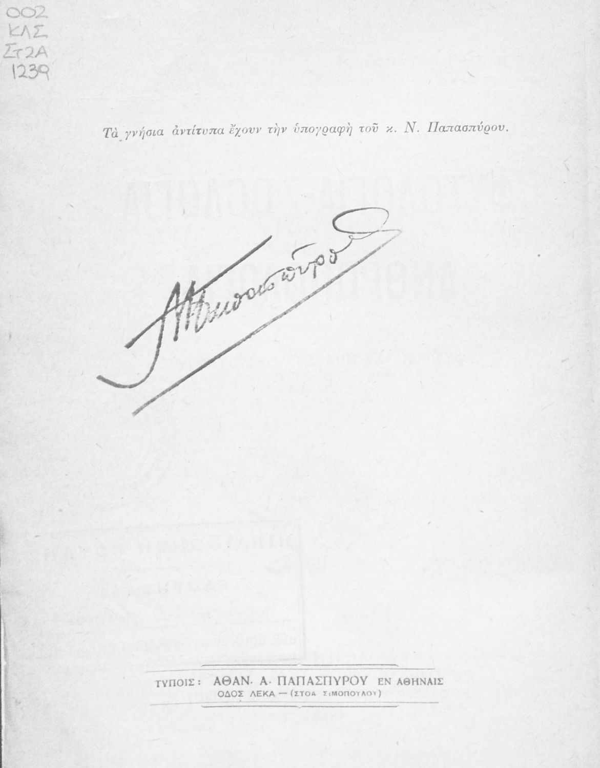 Εκδότης: Ιωάννης Ν. Σιδέρης Έτος έκδοσης: 1933 Τόπος έκδοσης: Αθήνα |