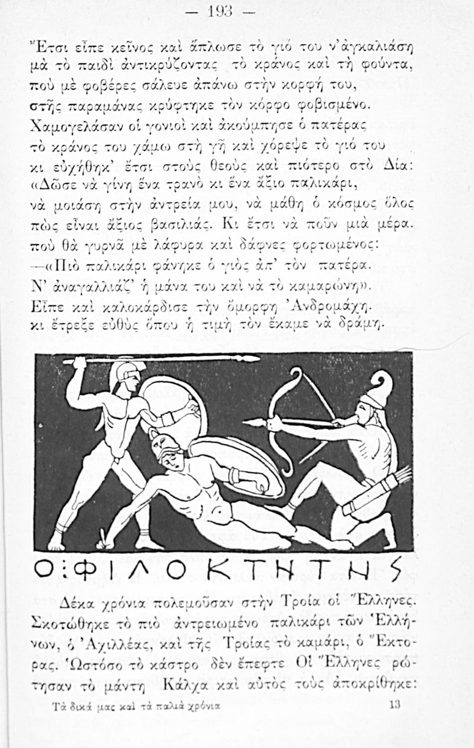 Αναγνωστικό για τους μαθητές της Γ΄ Δημοτικού που περιλαμβάνει ποιήματα και πεζά με θέματα από την καθημερινή ζωή των Ελλήνων και την μυθολογία τους.