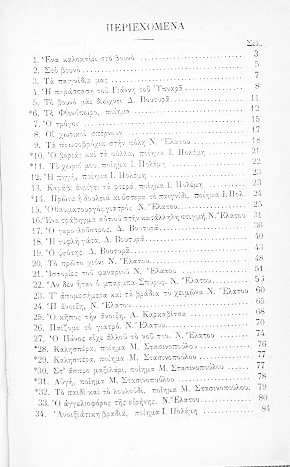 Αναγνωστικό για τους μαθητές της Γ΄ Δημοτικού που περιλαμβάνει ποιήματα και πεζά με θέματα από την καθημερινή ζωή των Ελλήνων και την μυθολογία τους.