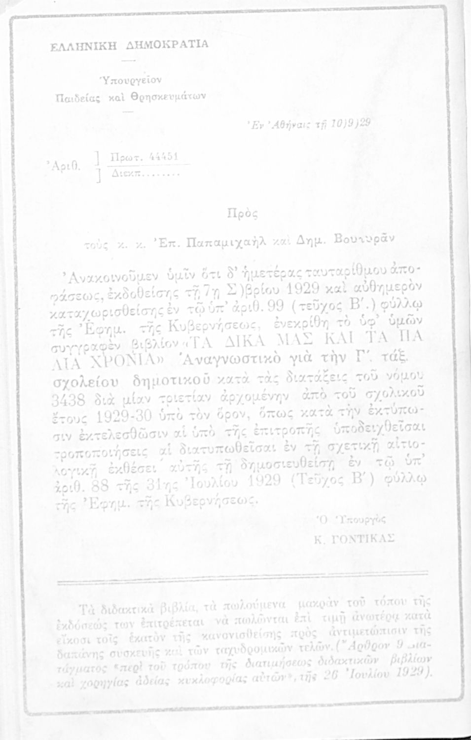 Υπουργική απόφαση / Σύμβαση: 44451/10-9-1929