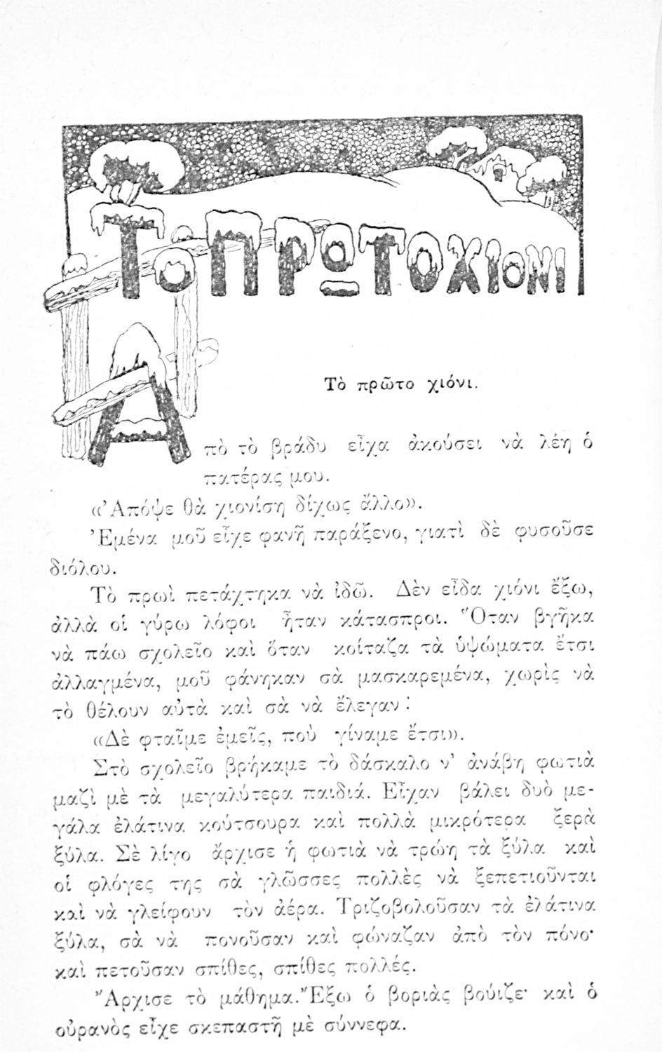 Αναγνωστικό για τους μαθητές της Γ΄ Δημοτικού που περιλαμβάνει ποιήματα και πεζά με θέματα από την καθημερινή ζωή των Ελλήνων και την μυθολογία τους.