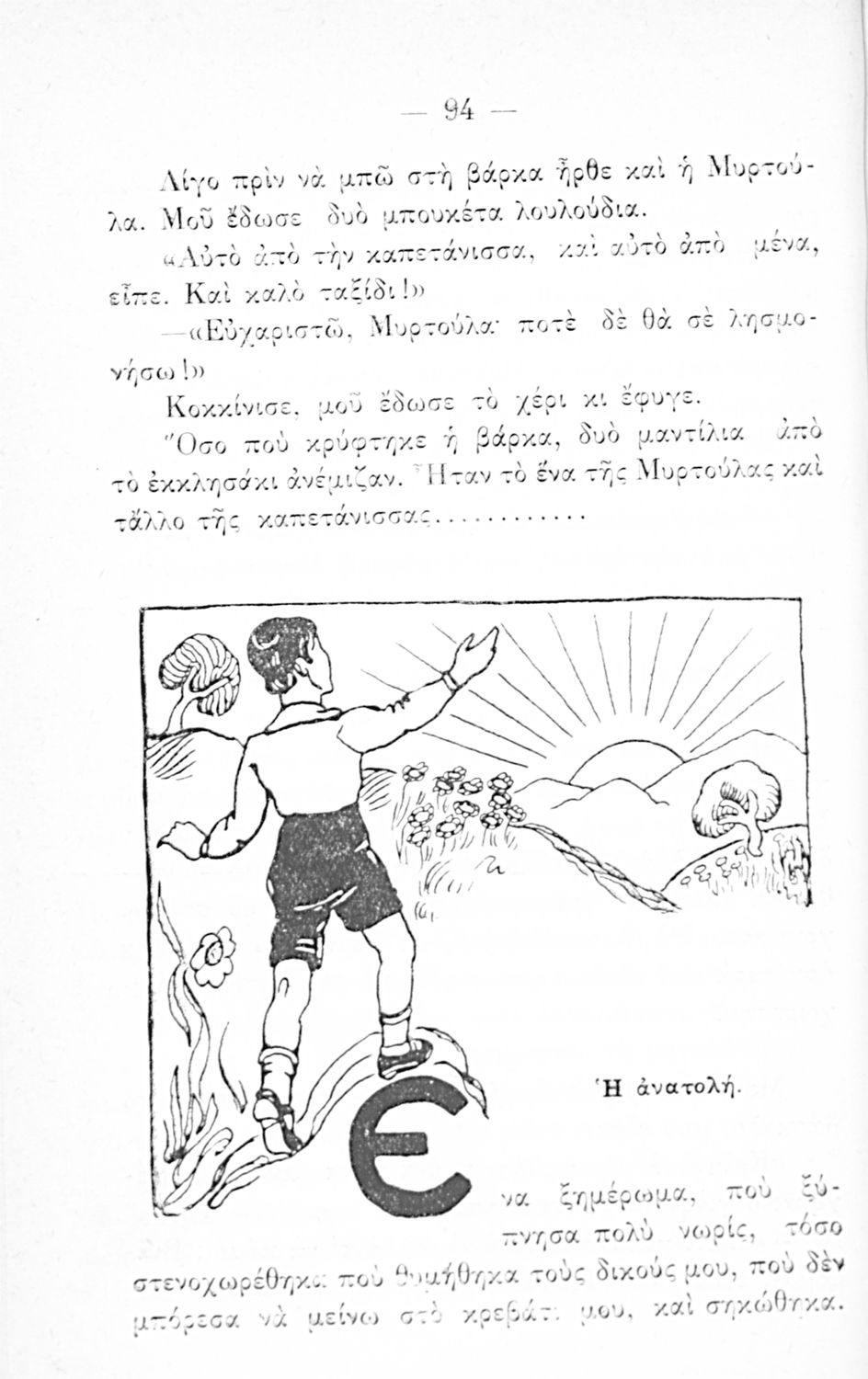 Αναγνωστικό για τους μαθητές της Γ΄ Δημοτικού που περιλαμβάνει ποιήματα και πεζά με θέματα από την καθημερινή ζωή των Ελλήνων και την μυθολογία τους.