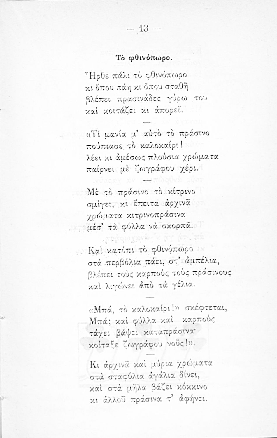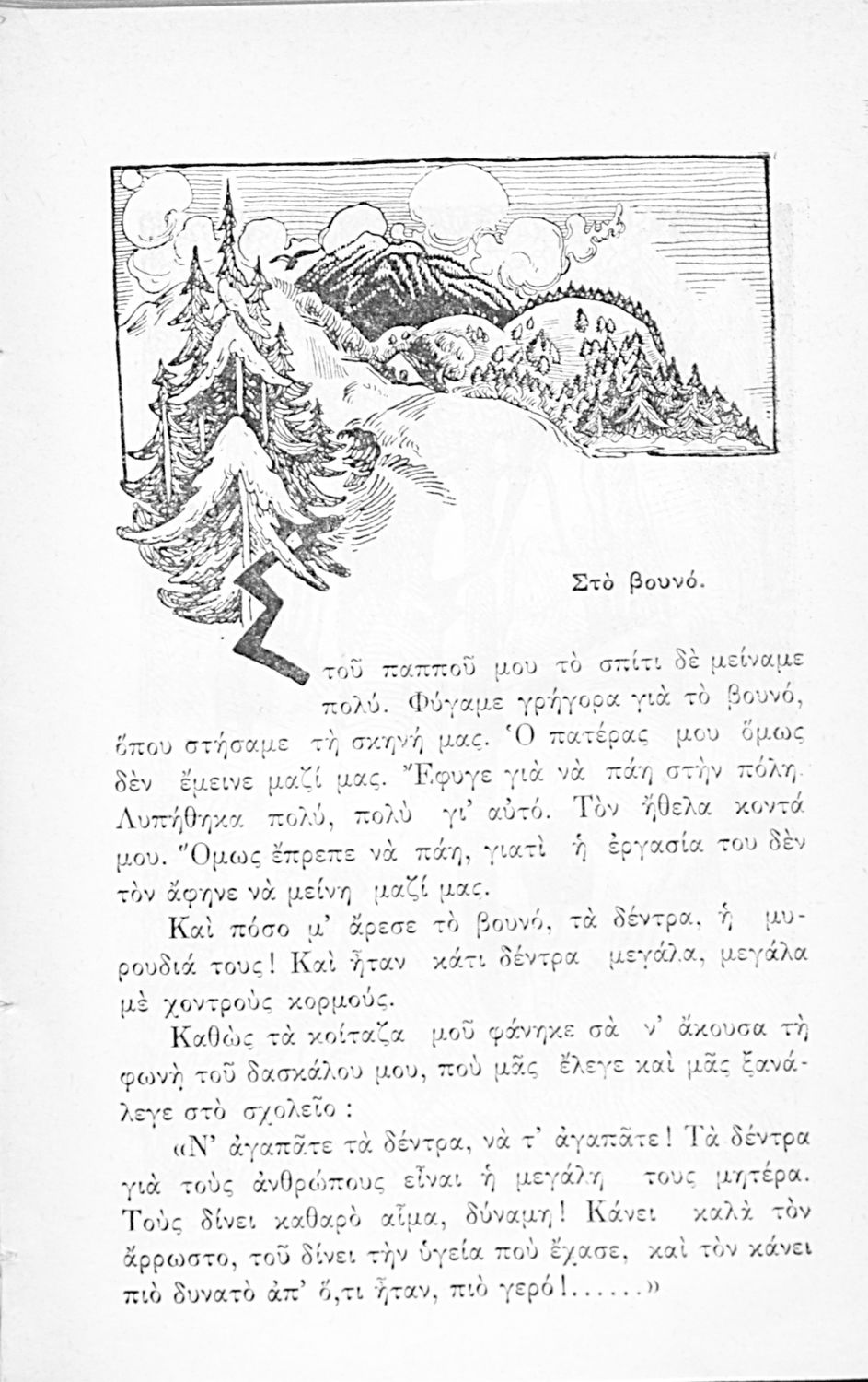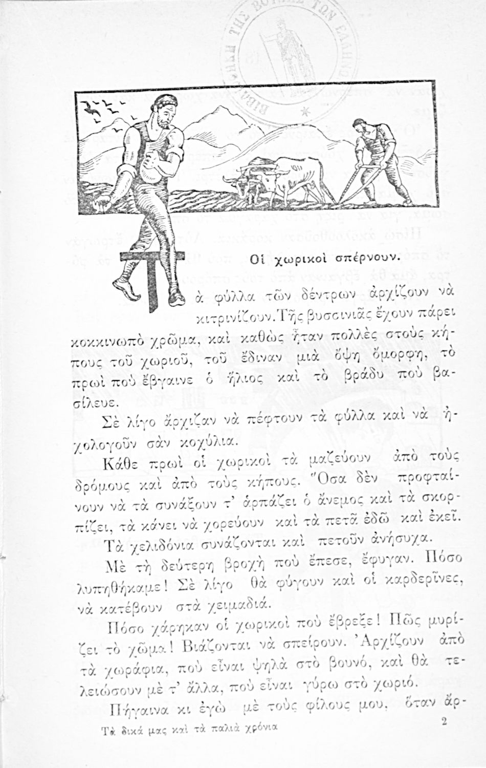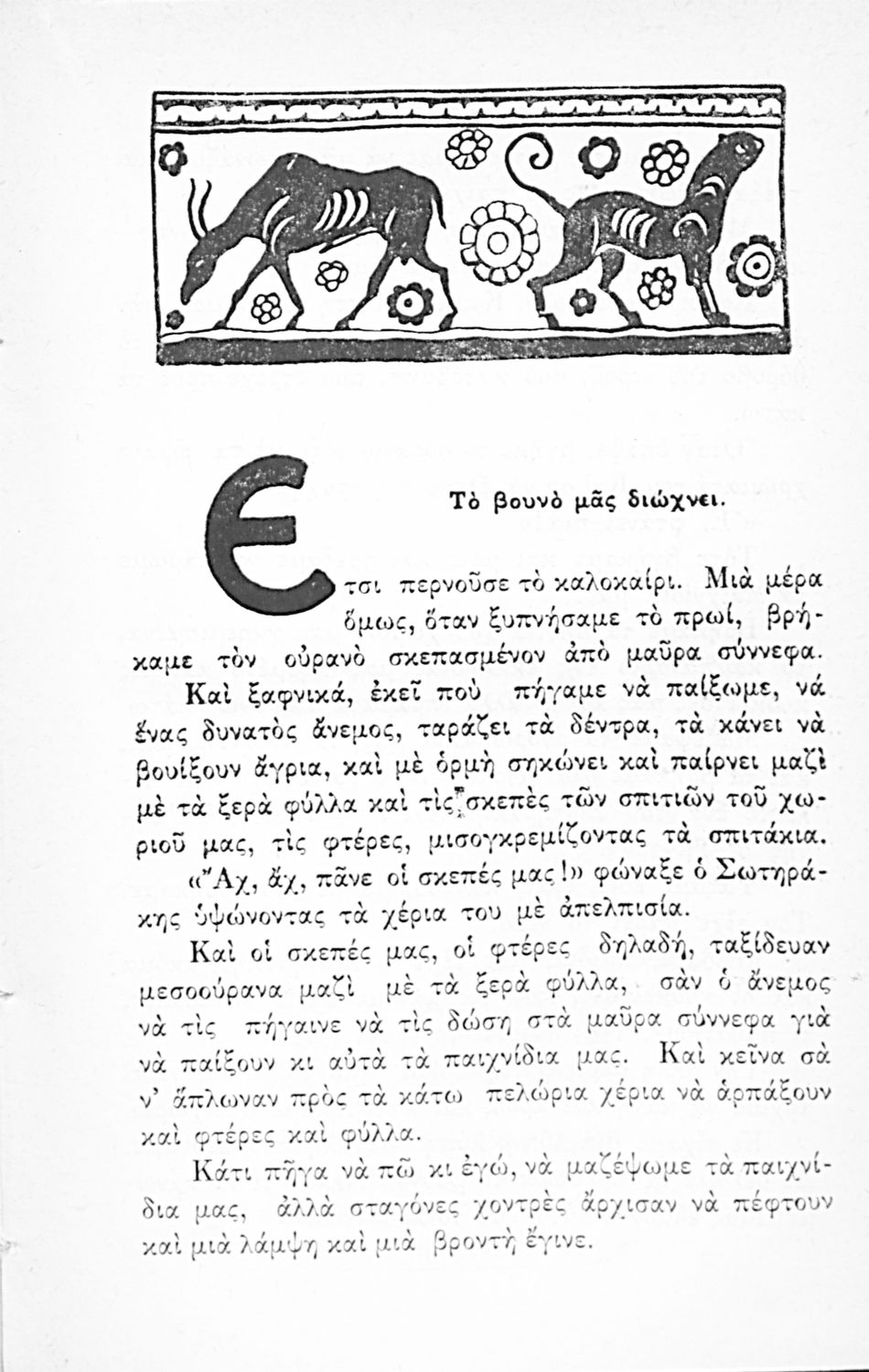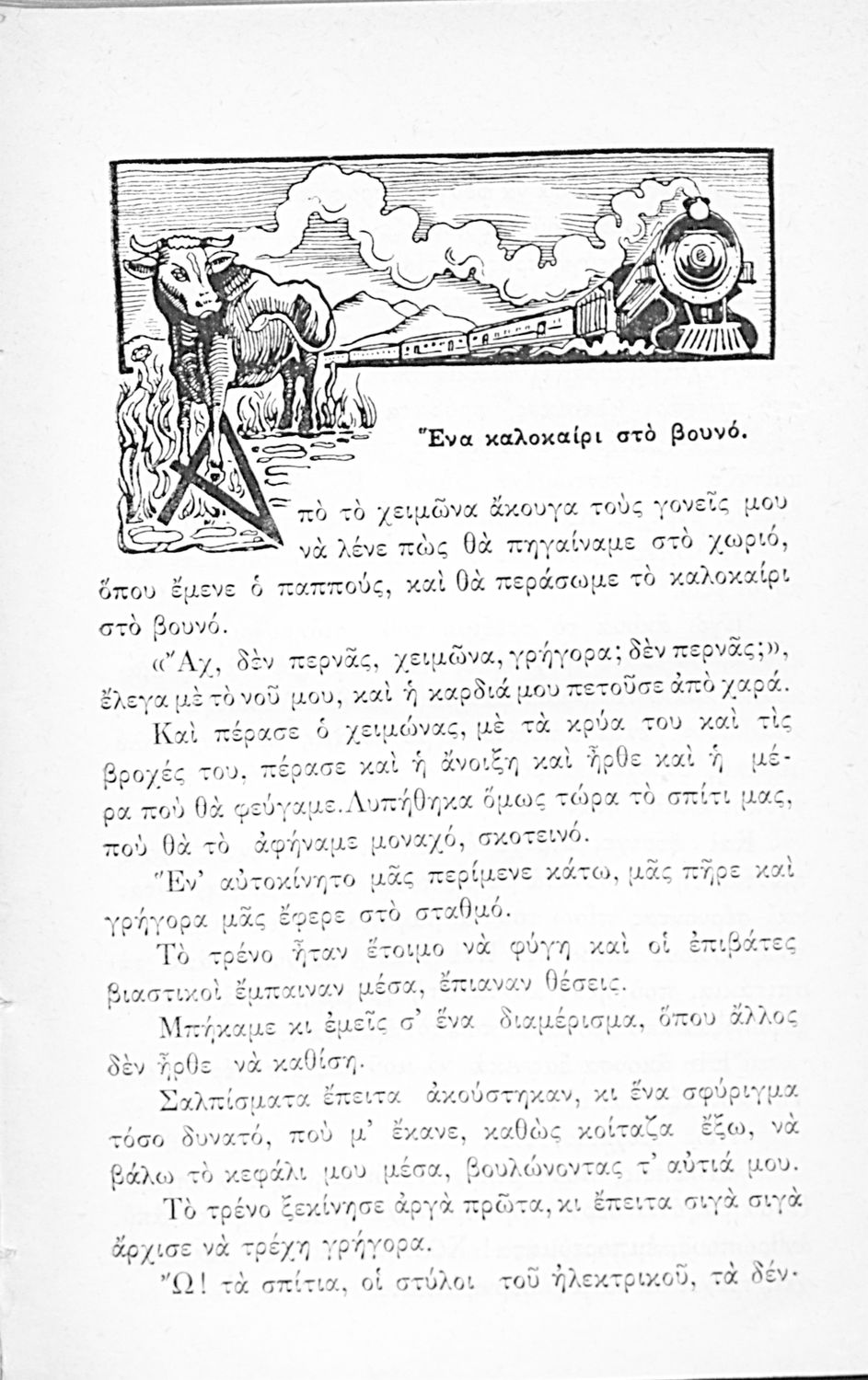 Αναγνωστικό για τους μαθητές της Γ΄ Δημοτικού που περιλαμβάνει ποιήματα και πεζά με θέματα από την καθημερινή ζωή των Ελλήνων και την μυθολογία τους.