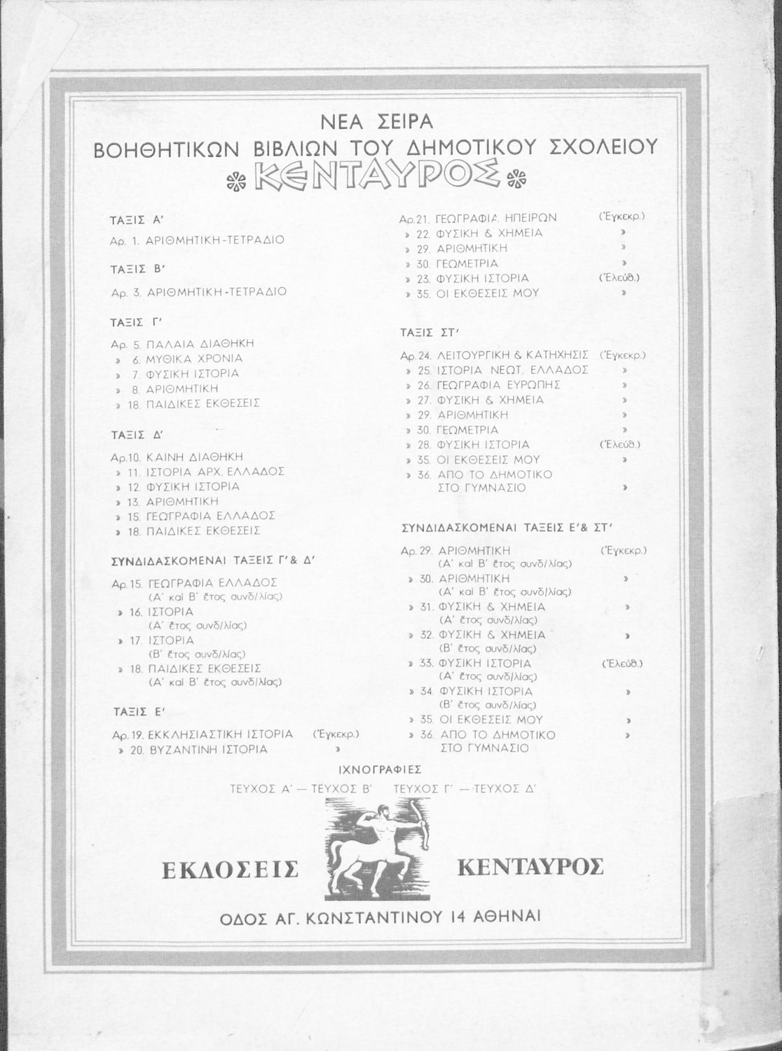 Μαθητικό βοήθημα της Δ΄ Δημοτικού για το μάθημα της Φυσικής Ιστορίας. Περιέχει πληροφορίες για τη φυτολογία και τη ζωολογία. Το βιβλίο έχει εικόνες, καθώς και δίστιχα ή παροιμίες, οι πρακτικές αυτές ...