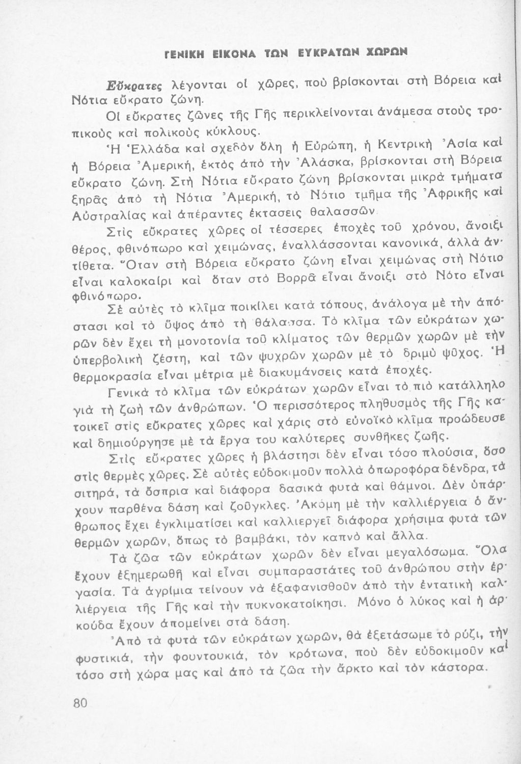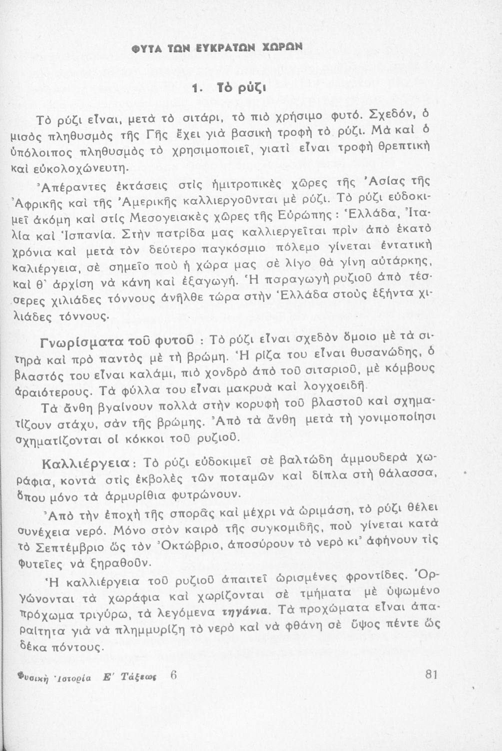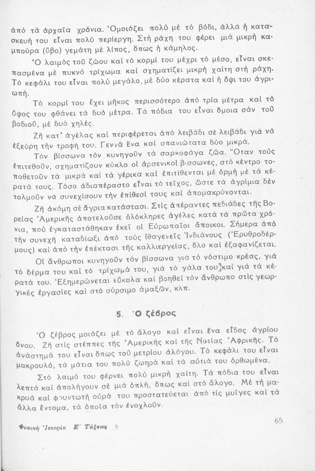 Σχολικό εγχειρίδιο της Ε' Τάξις Δημοτικού για το μάθημα της Φυσικής Ιστορίας. Περιέχει τα χαρακτηριστικά και τα γνωρίσματα των φυτών και των ζώων των θερμών,εύκρατων και ψυχρών χωρών. Επίσης, αναφέρεται στον θαλάσσιο πλούτο και την ορυκτολογία και τα μέταλλα.