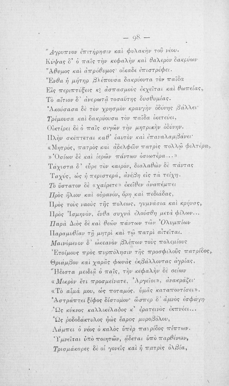 Βαθμίδα εκπαίδευσης: Πρωτοβάθμια Τάξη: Δ' Δημοτικού Μάθημα: Νέα Ελληνικά Γλώσσα: Καθαρεύουσα Παρουσίαση περιεχομένου: Αναγνωστικό Δ' Δημοτικού που περιέχει κείμενα πεζά και ποιήματα τα οποία αντλούν τα θέματά τους από τις ηθικές αξίες, το εθνικό παρελθόν, την οικογενειακή ζωή, την ελληνική φύση και την ελληνική μυθολογία. |