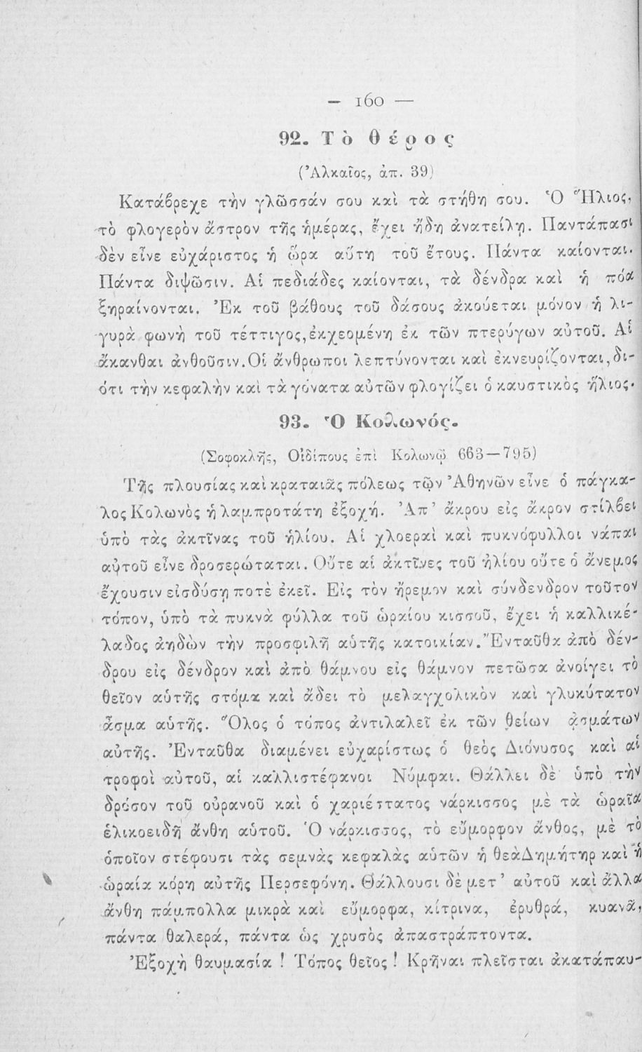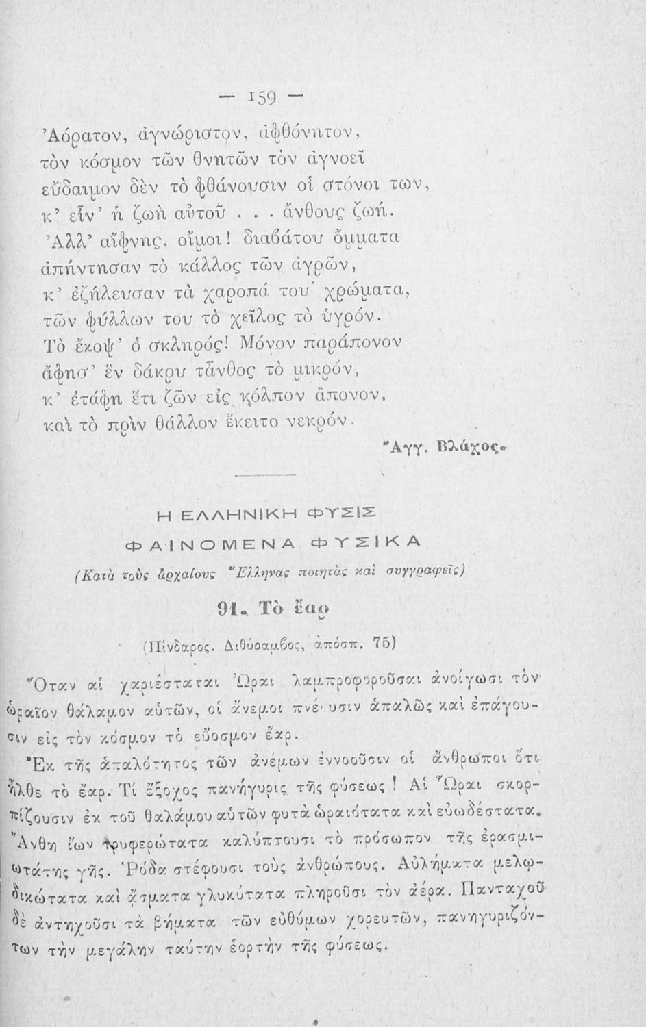 Σχολικό εγχειρίδιο Νέων Ελληνικών Γ΄ Γυμνασίου που περιλαμβάνει ποιήματα και πεζά Ελλήνων συγγραφέων και δημοτικά τραγούδια εμπνευσμένα από την ελληνική φύση και τη ζωή στην ύπαιθρο, την οικογενειακή και ...