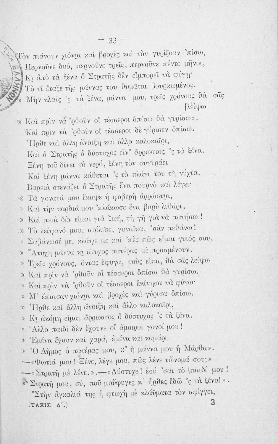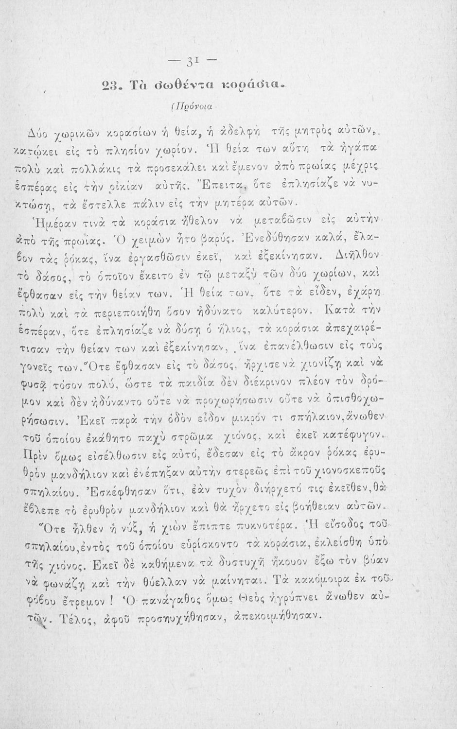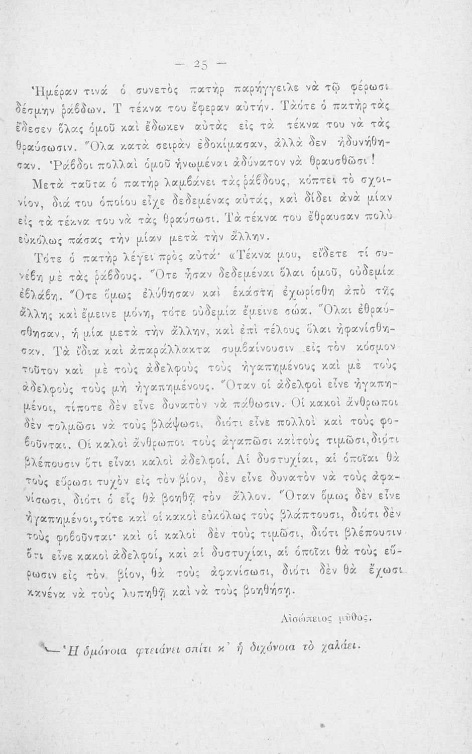 Αναγνωστικό Γ΄ Δημοτικού που περιλαμβάνει ποιήματα και πεζά με θέματα όπως η καλή και κακή συναναστροφή, η φρόνηση, η οκνηρία, η φιλανθρωπία και η πίστη στο Θεό