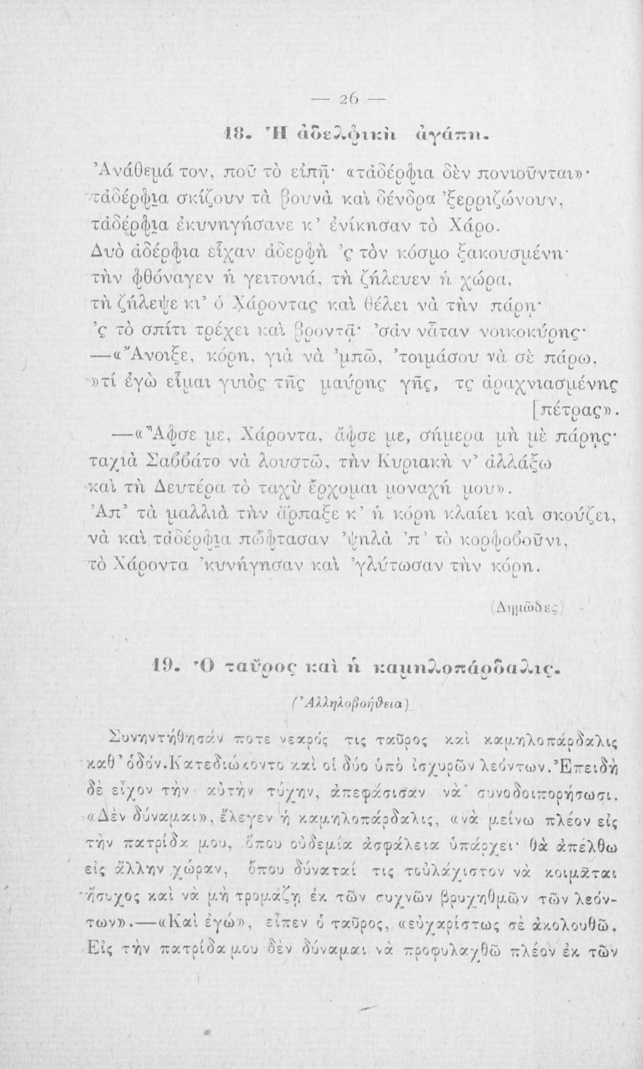 Αναγνωστικό Β' Δημοτικού που περιλαμβάνει πεζά και ποιήματα, ηθικοπλαστικού περιεχομένου, και προβάλει αξίες και αρετές όπως η τιμιότητα, η ευσπλαχνία, η γενναιότητα, η αγάπη, η φιλοπατρία, κι η ευγνωμοσύνη.