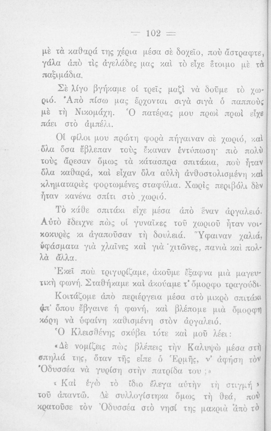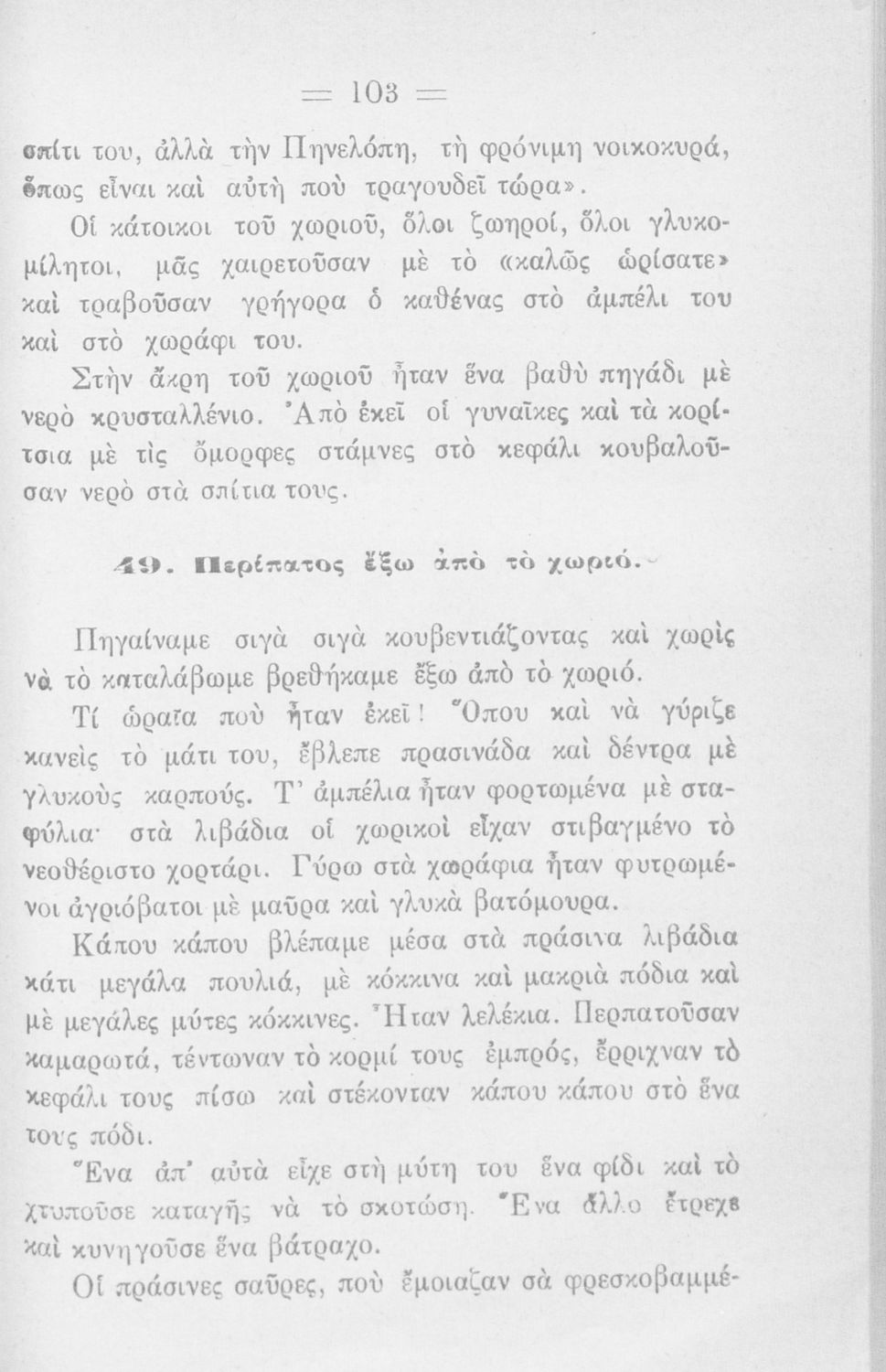 Αναγνωστικό Δ΄ Δημοτικού που περιέχει πεζά και ποιήματα εμπνευσμένα από την ελληνική ιστορία και μυθολογία, την κοινωνική ζωή και την ελληνική φύση.