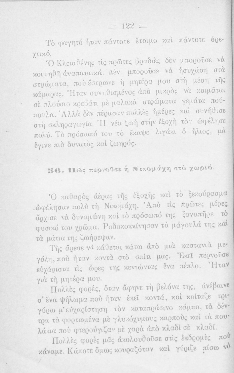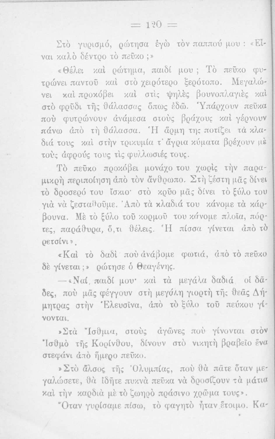Αναγνωστικό Δ' Δημοτικού για το μάθημα της Γλώσσας. Περιέχει πεζά και ποιήματα, με περιεχόμενο πατριωτικό και ηθικοπλαστικό. Η γλώσσα είναι δημοτική και το ύφος είναι απλό. Περιέχει εικόνες, οι οποίες οπτικοποιούν τα κείμενα. Στο τέλος έχει παρτιτούρες.