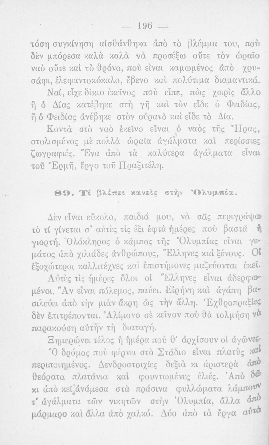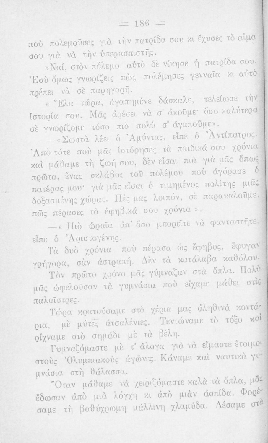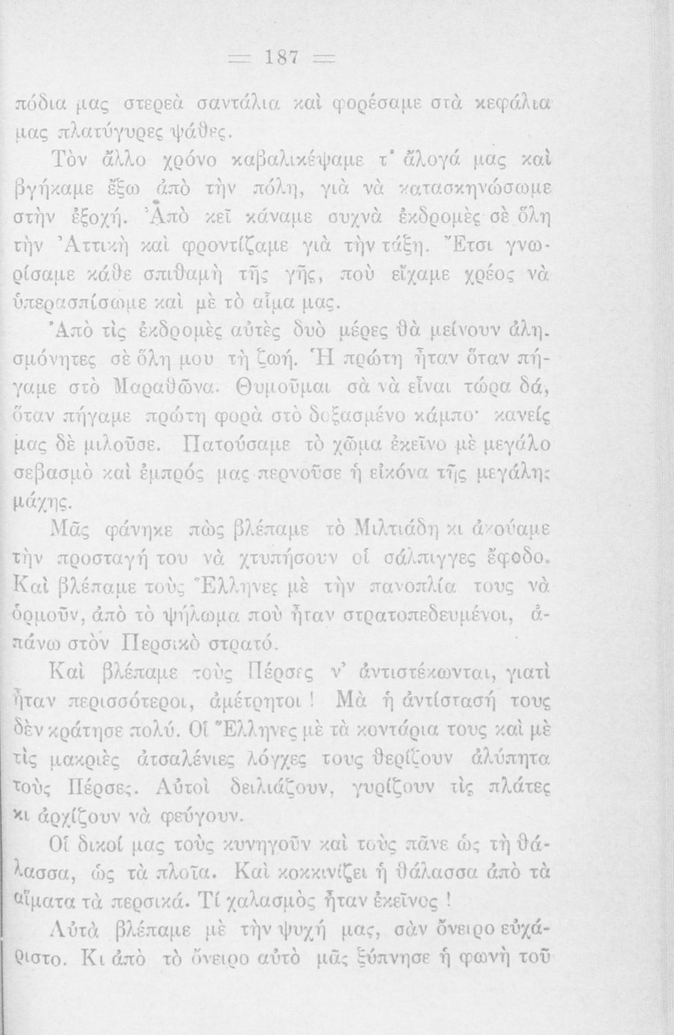Αναγνωστικό Δ΄ Δημοτικού που περιέχει πεζά και ποιήματα εμπνευσμένα από την ελληνική ιστορία και μυθολογία, την κοινωνική ζωή και την ελληνική φύση.