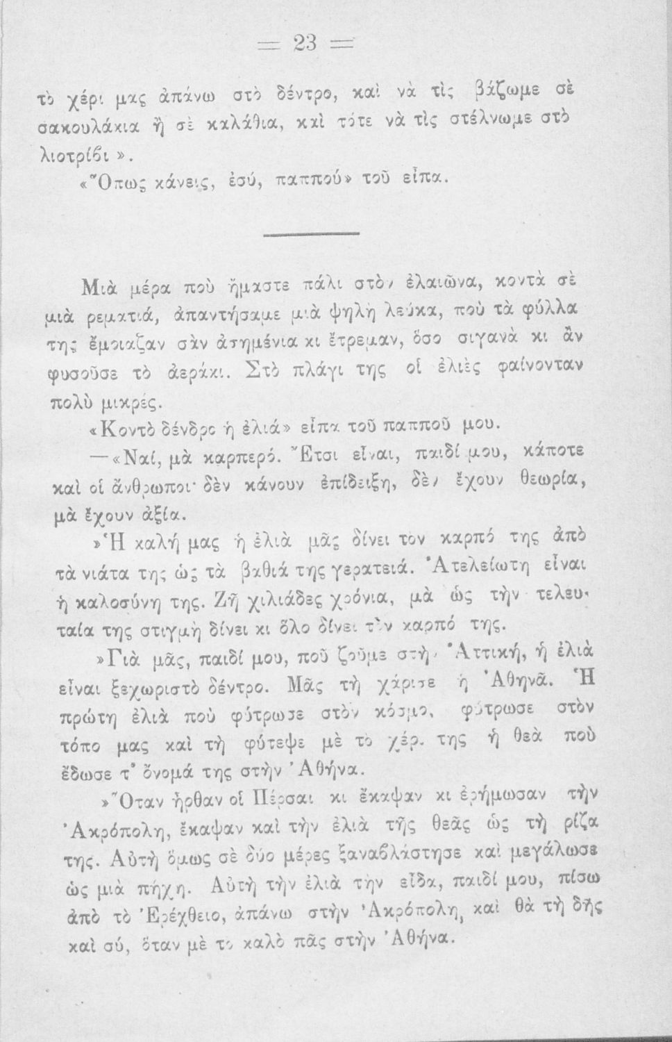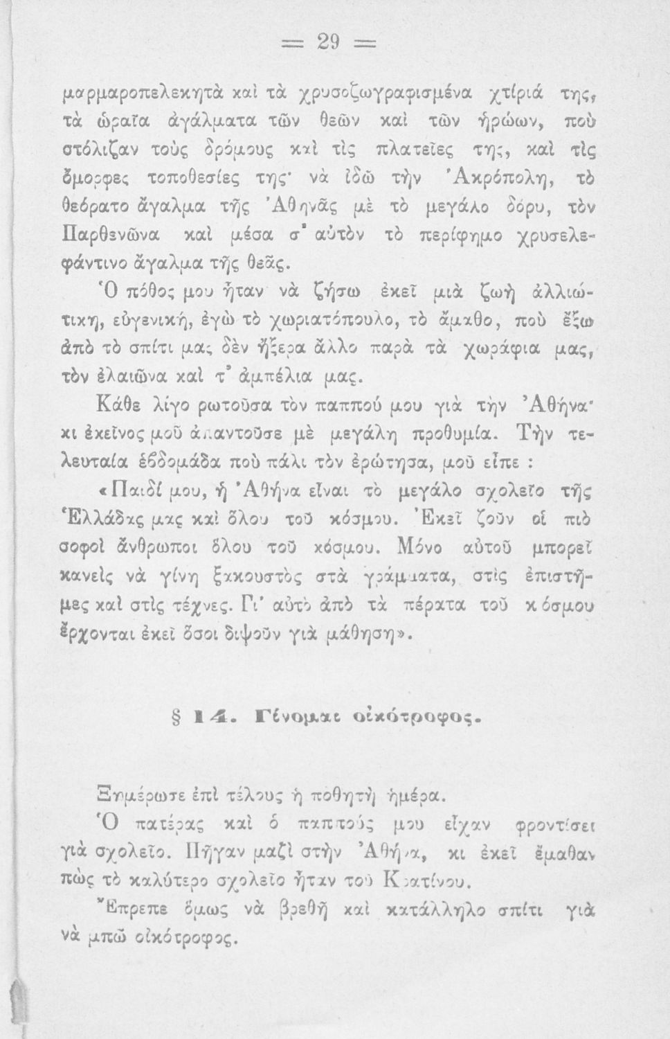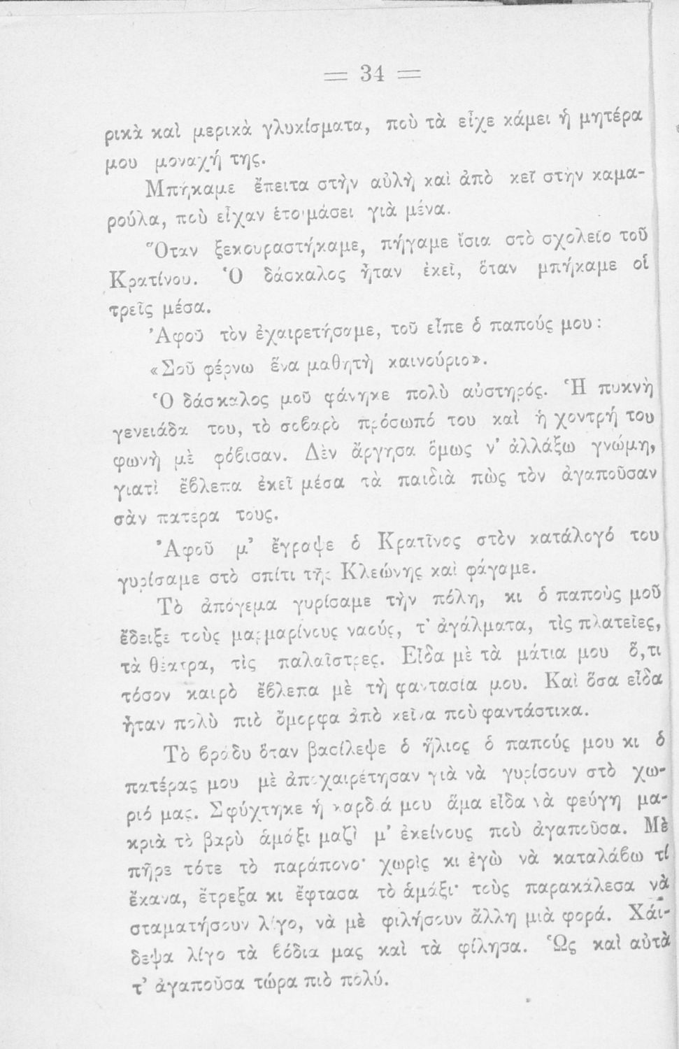520 ## _aΑναγνωστικό Δ' Δημοτικού για το μάθημα της Γλώσσας. Περιέχει πεζά και ποιήματα, με περιεχόμενο πατριωτικό και ηθικοπλαστικό. Η γλώσσα είναι δημοτική και το ύφος είναι απλό. Περιέχει εικόνες, οι οποίες οπτικοποιούν τα κείμενα. Στο τέλος έχει παρτιτούρες.