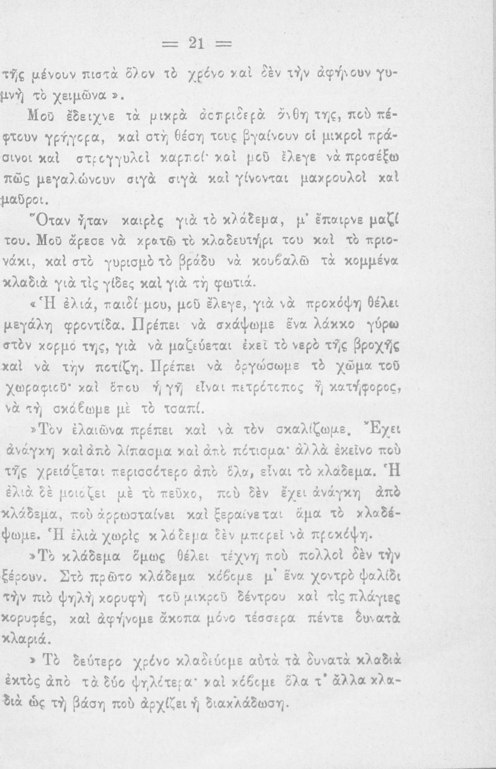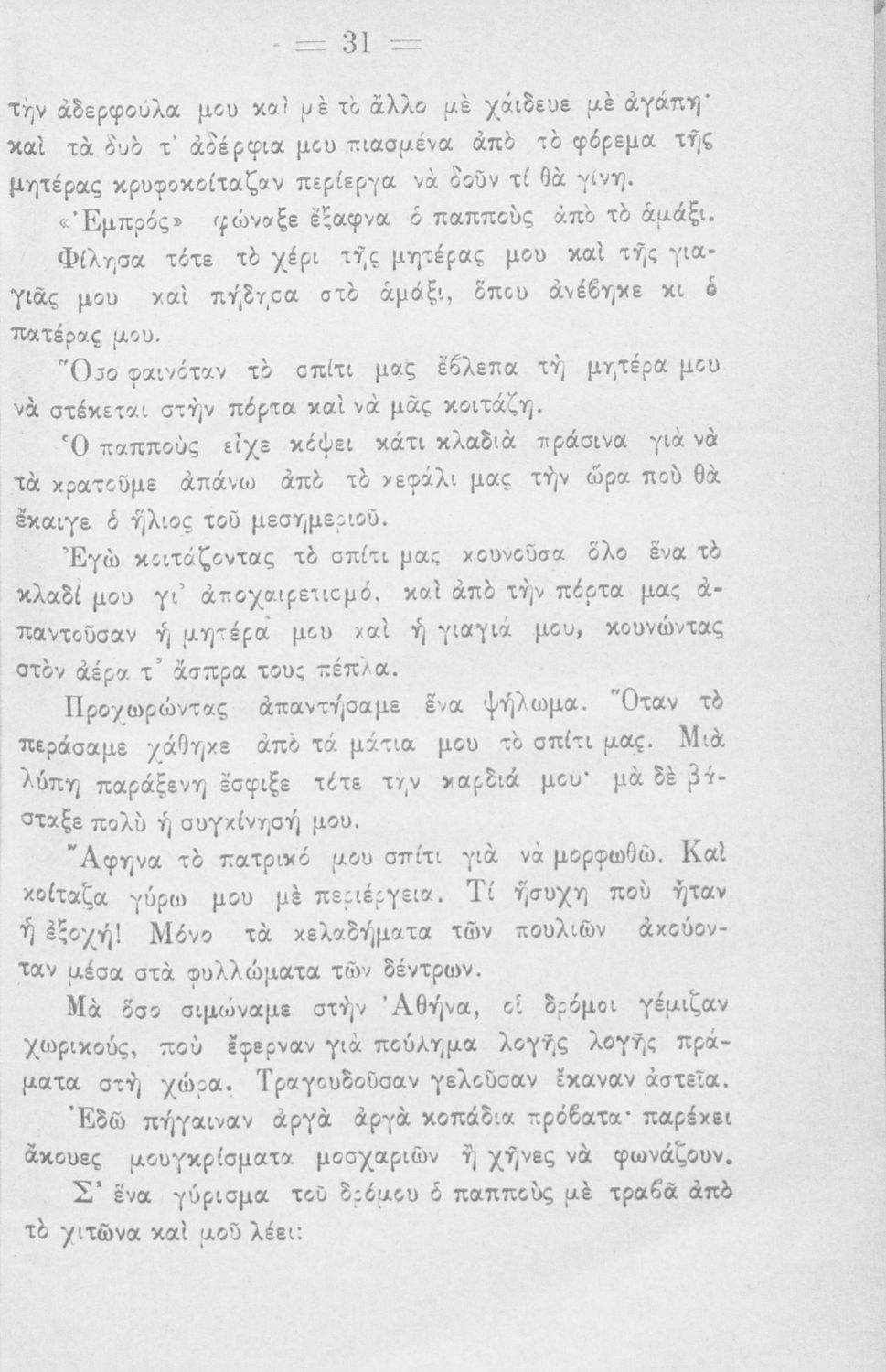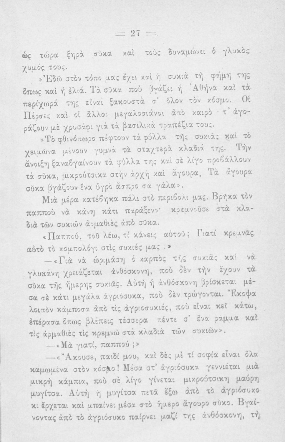 520 ## _aΑναγνωστικό Δ' Δημοτικού για το μάθημα της Γλώσσας. Περιέχει πεζά και ποιήματα, με περιεχόμενο πατριωτικό και ηθικοπλαστικό. Η γλώσσα είναι δημοτική και το ύφος είναι απλό. Περιέχει εικόνες, οι οποίες οπτικοποιούν τα κείμενα. Στο τέλος έχει παρτιτούρες.