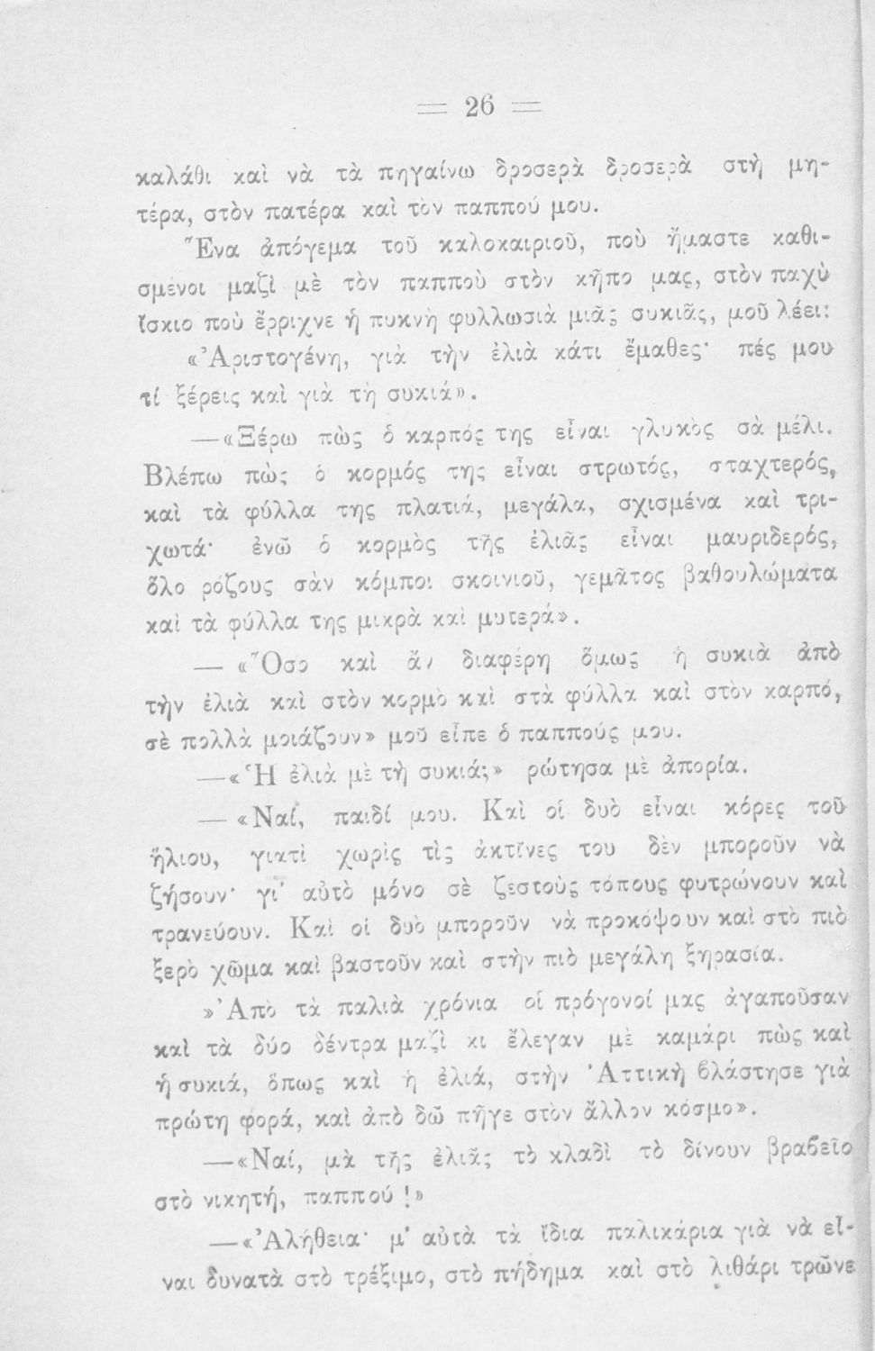Αναγνωστικό Δ' Δημοτικού για το μάθημα της Γλώσσας. Περιέχει πεζά και ποιήματα, με περιεχόμενο πατριωτικό και ηθικοπλαστικό. Η γλώσσα είναι δημοτική και το ύφος είναι απλό. Περιέχει εικόνες, οι οποίες οπτικοποιούν τα κείμενα. Στο τέλος έχει παρτιτούρες.