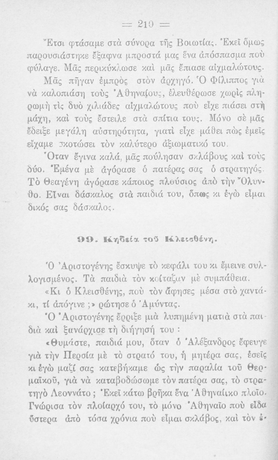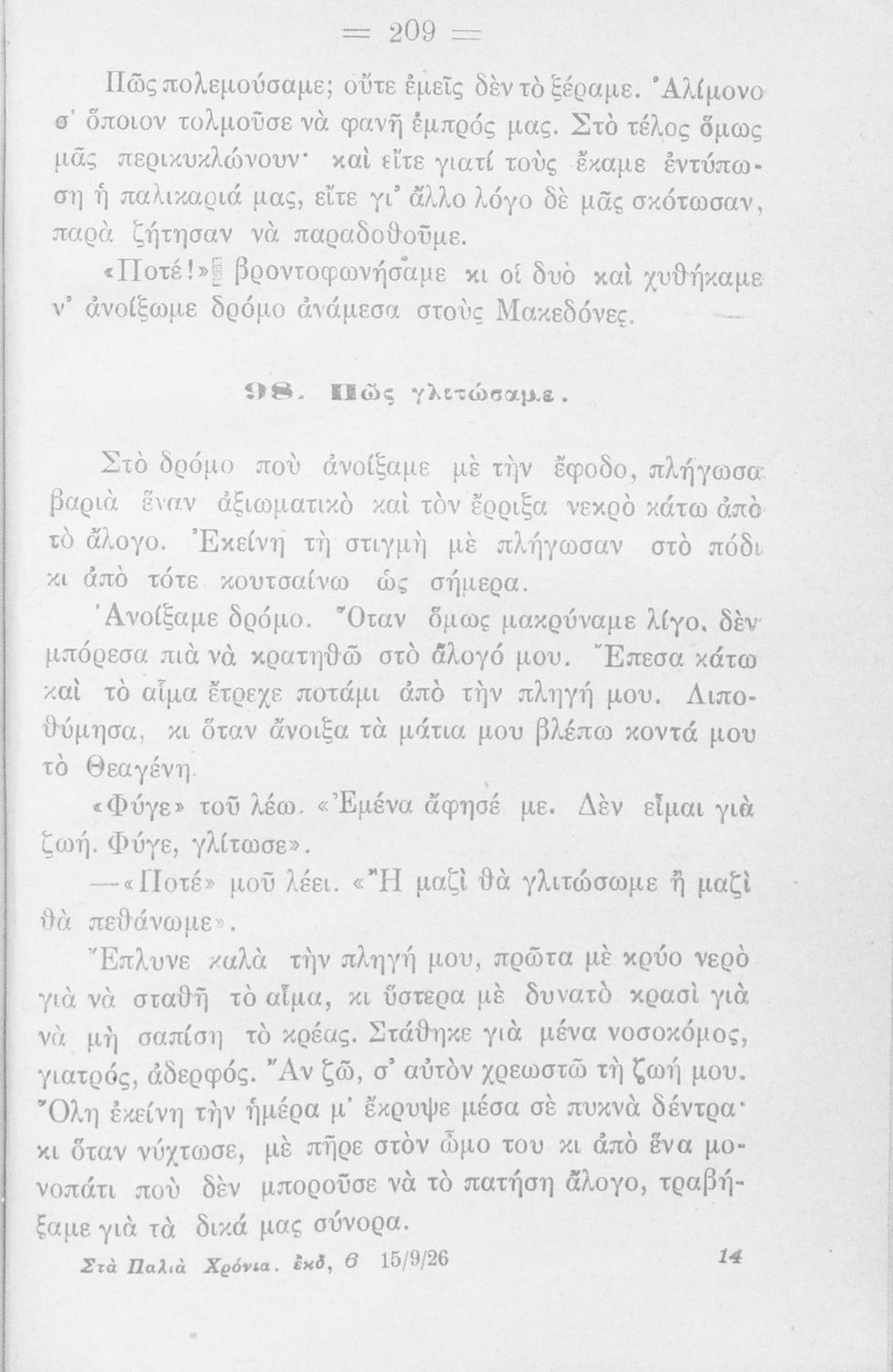 Αναγνωστικό Δ' Δημοτικού για το μάθημα της Γλώσσας. Περιέχει πεζά και ποιήματα, με περιεχόμενο πατριωτικό και ηθικοπλαστικό. Η γλώσσα είναι δημοτική και το ύφος είναι απλό. Περιέχει εικόνες, οι οποίες οπτικοποιούν τα κείμενα. Στο τέλος έχει παρτιτούρες.