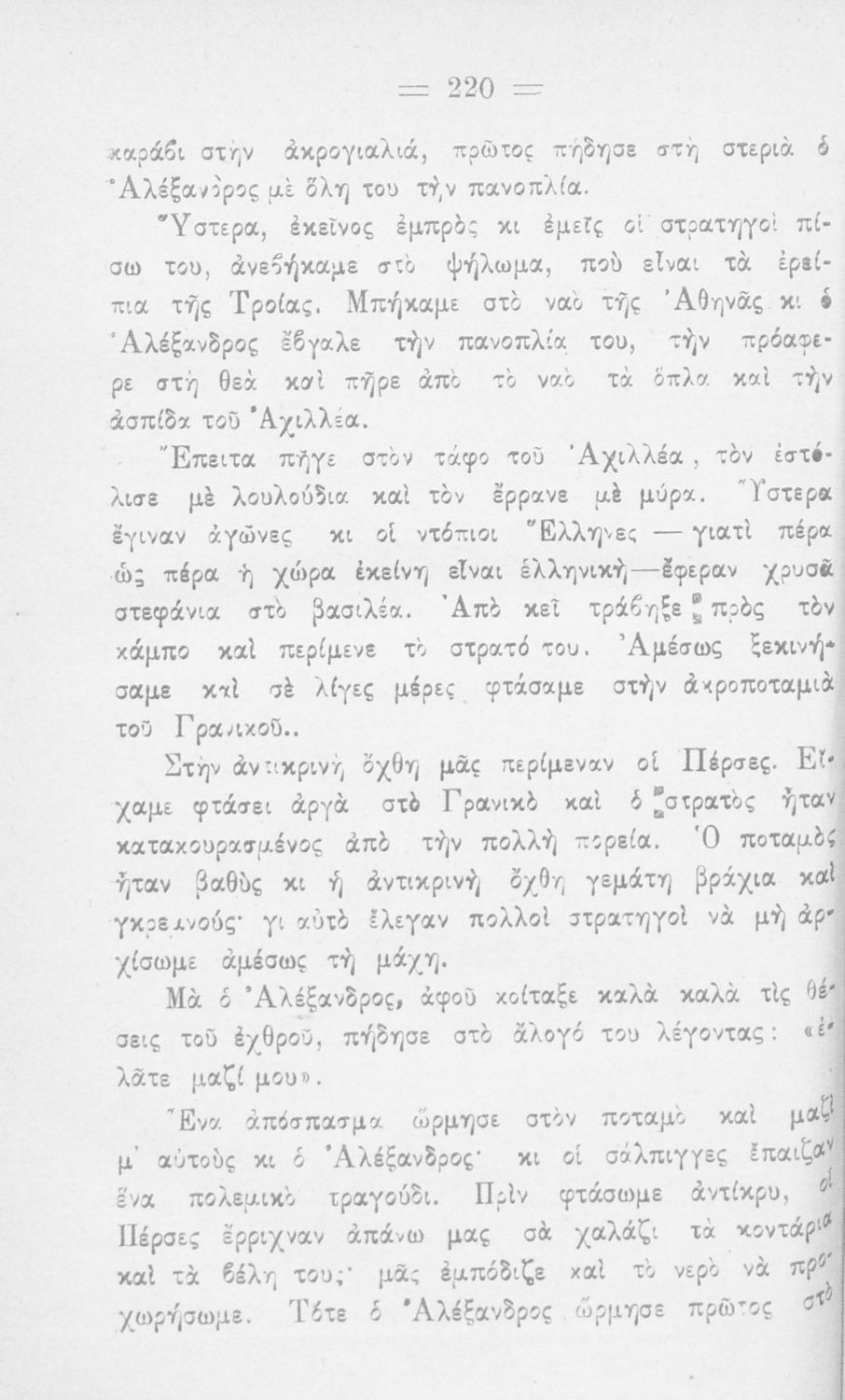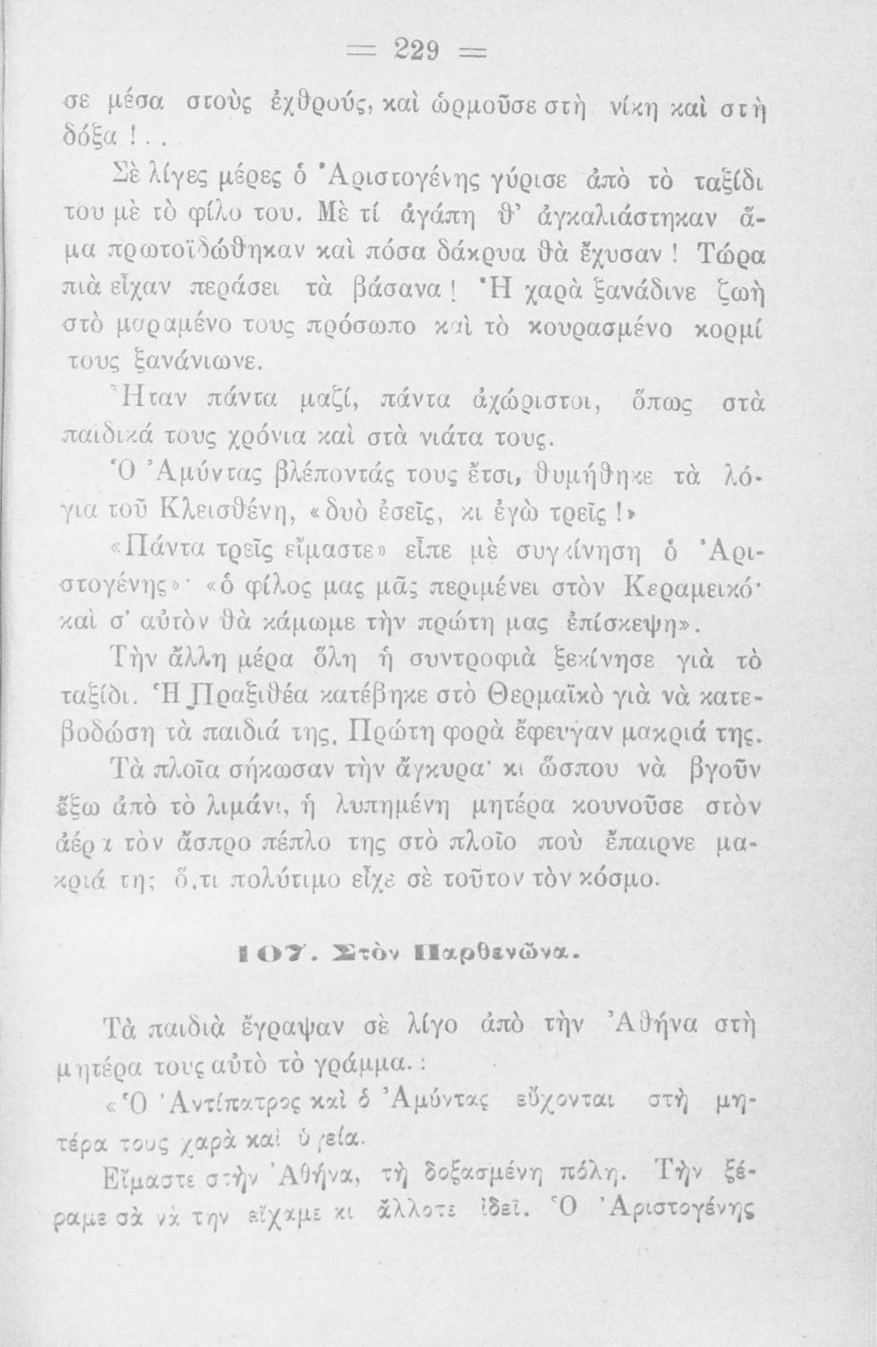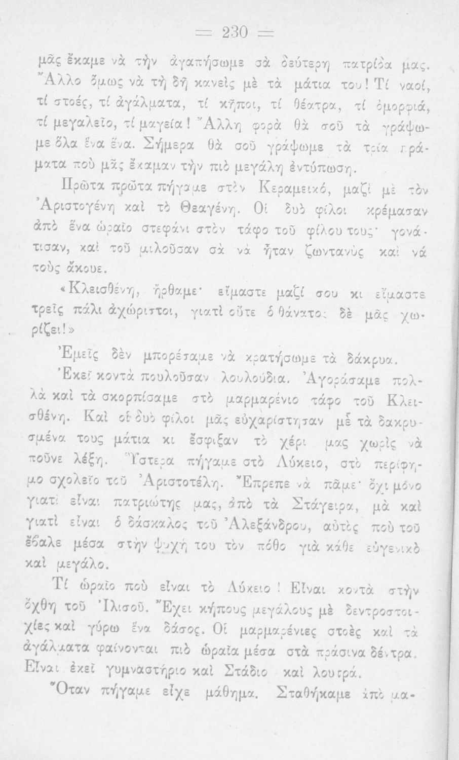 Αναγνωστικό Δ΄ Δημοτικού που περιέχει πεζά και ποιήματα εμπνευσμένα από την ελληνική ιστορία και μυθολογία, την κοινωνική ζωή και την ελληνική φύση.