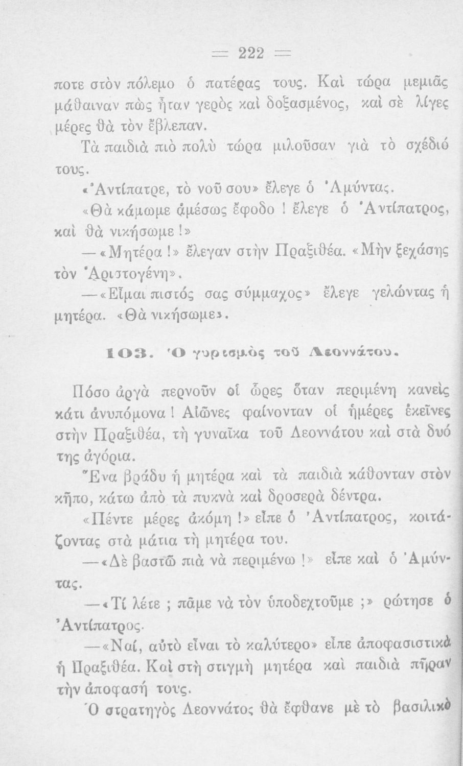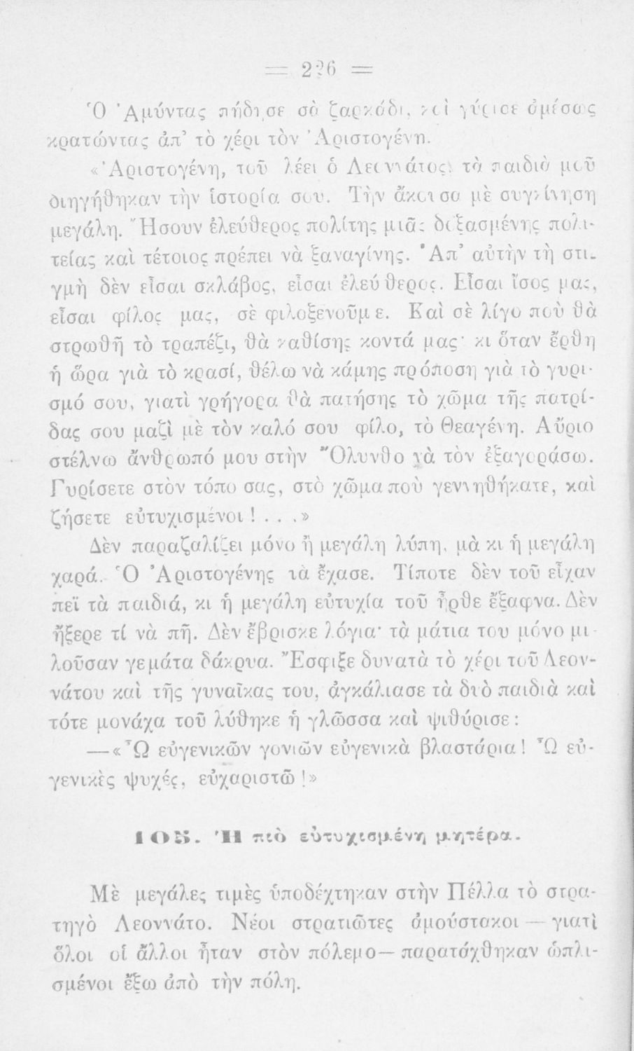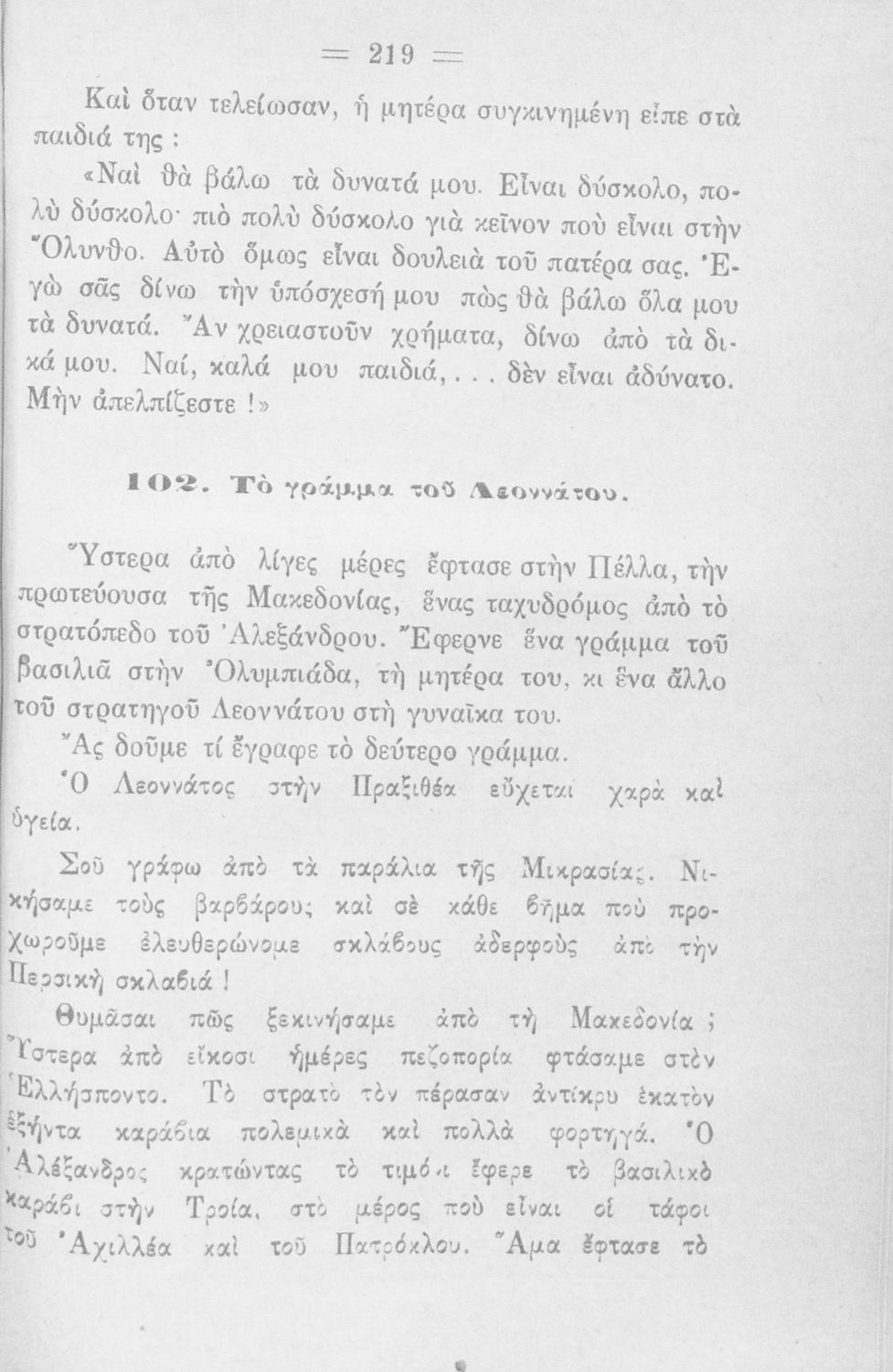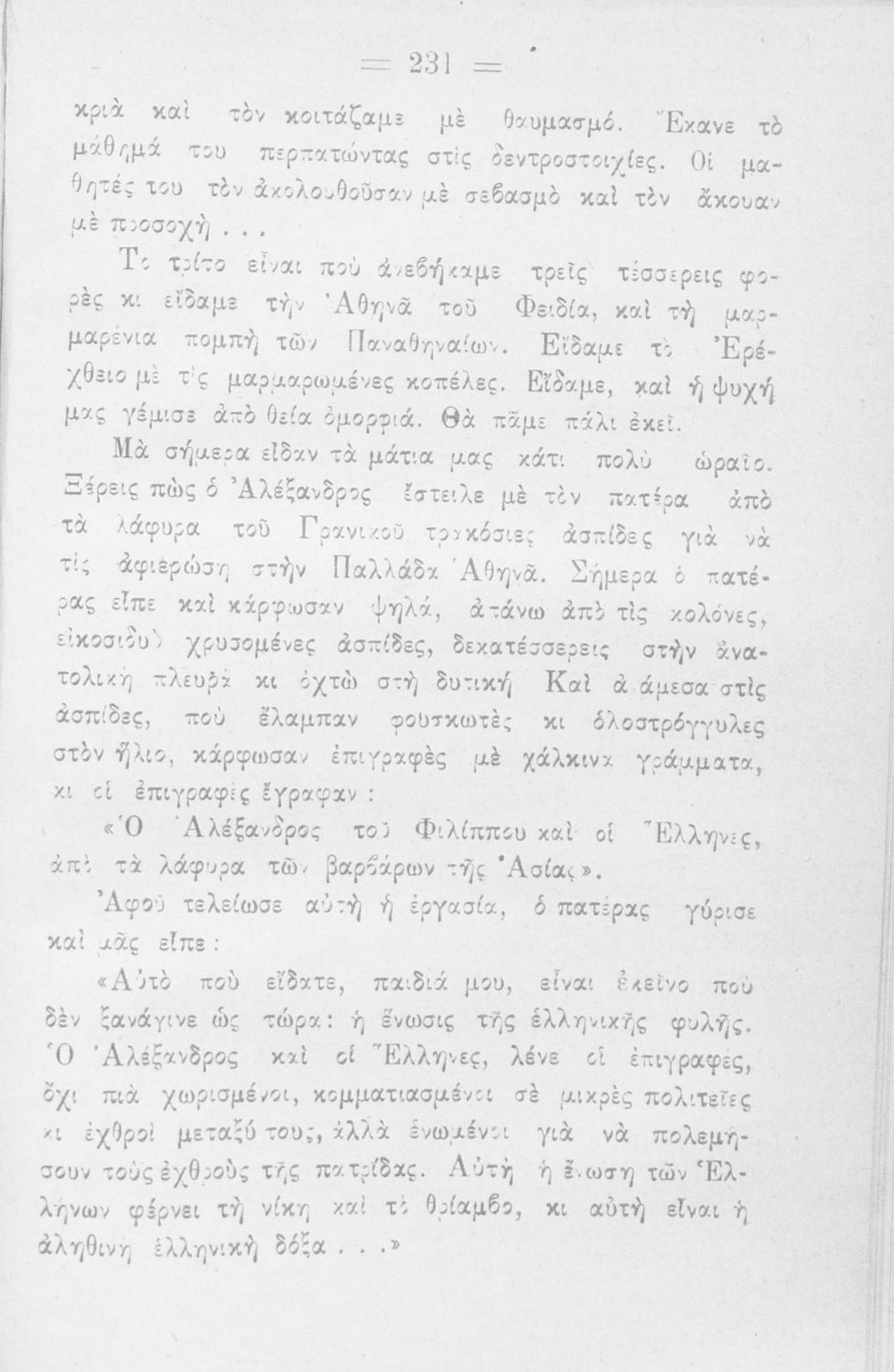 Αναγνωστικό Δ΄ Δημοτικού που περιέχει πεζά και ποιήματα εμπνευσμένα από την ελληνική ιστορία και μυθολογία, την κοινωνική ζωή και την ελληνική φύση.