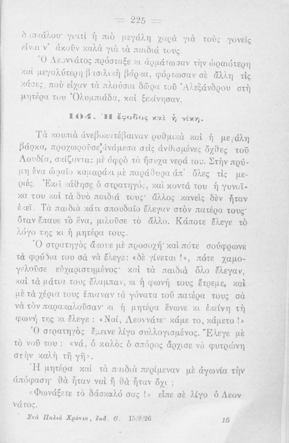 Αναγνωστικό Δ' Δημοτικού για το μάθημα της Γλώσσας. Περιέχει πεζά και ποιήματα, με περιεχόμενο πατριωτικό και ηθικοπλαστικό. Η γλώσσα είναι δημοτική και το ύφος είναι απλό. Περιέχει εικόνες, οι οποίες οπτικοποιούν τα κείμενα. Στο τέλος έχει παρτιτούρες.