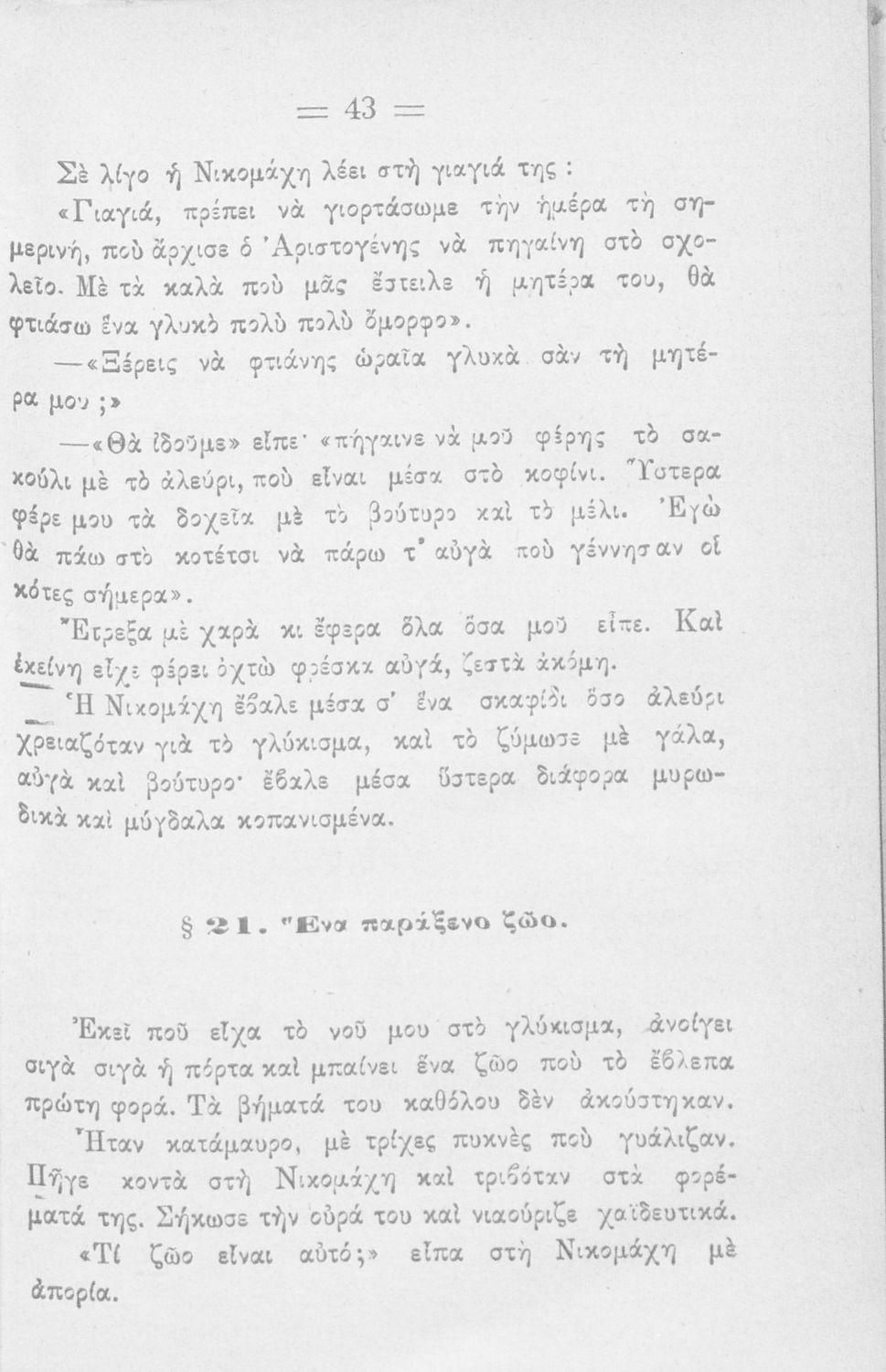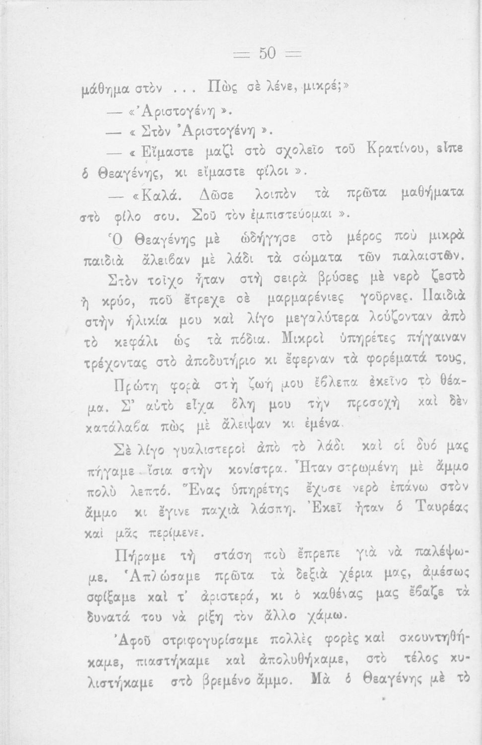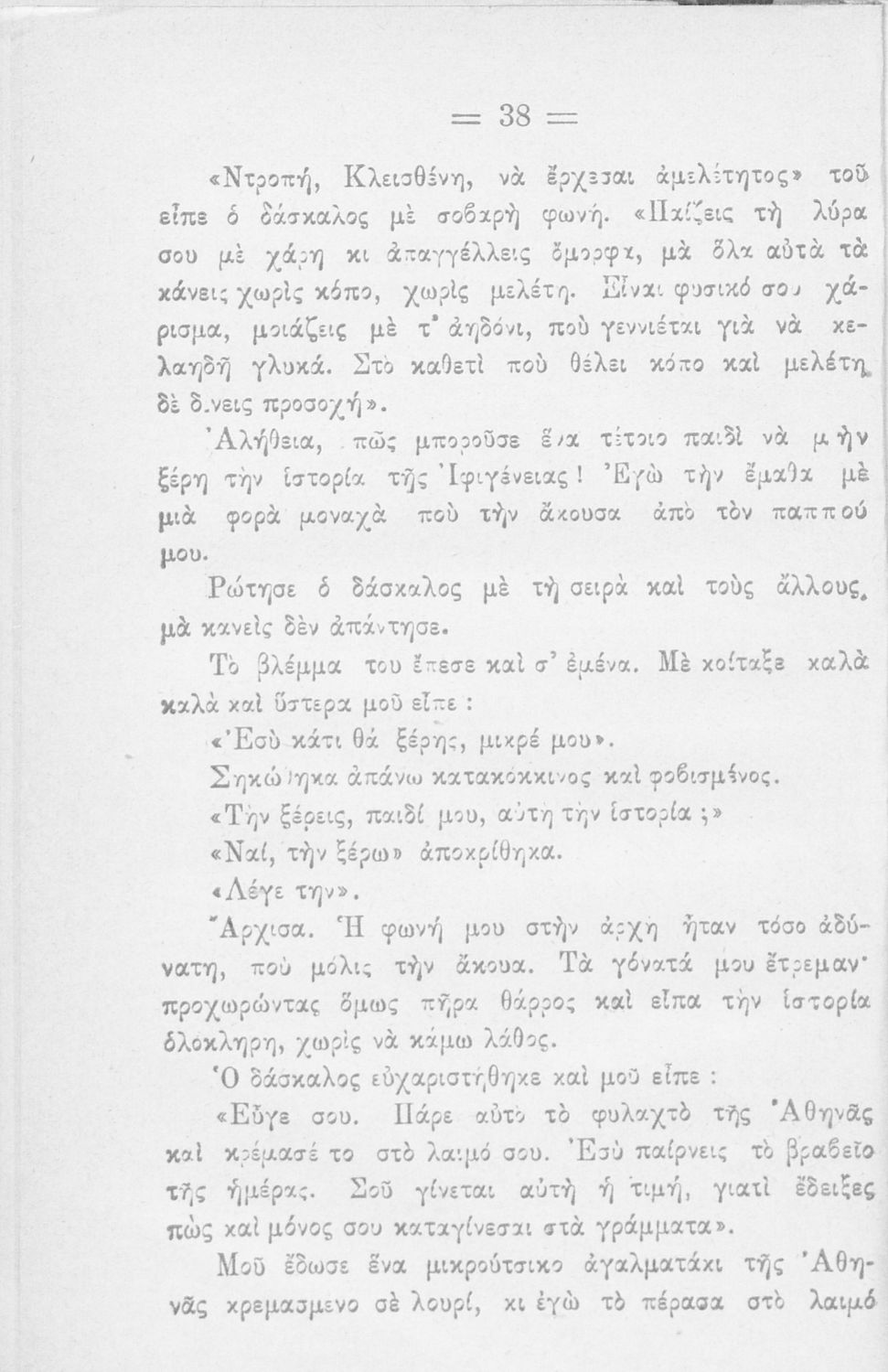 Αναγνωστικό Δ΄ Δημοτικού που περιέχει πεζά και ποιήματα εμπνευσμένα από την ελληνική ιστορία και μυθολογία, την κοινωνική ζωή και την ελληνική φύση.