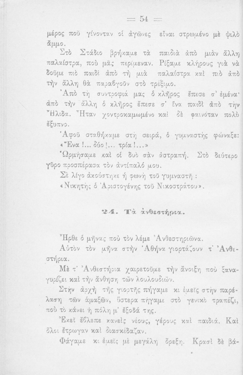 Αναγνωστικό για τους μαθητές της Δ' τάξης του Δημοτικού. Περιέχει ιστορίες από την αρχαία Ελλάδα για την εκμάθηση της Ελληνικής γλώσσας.