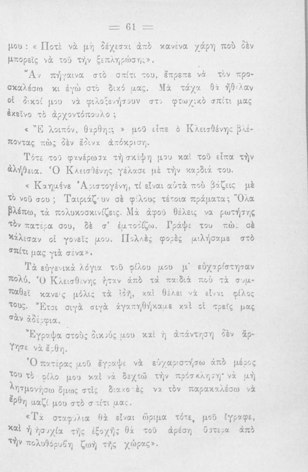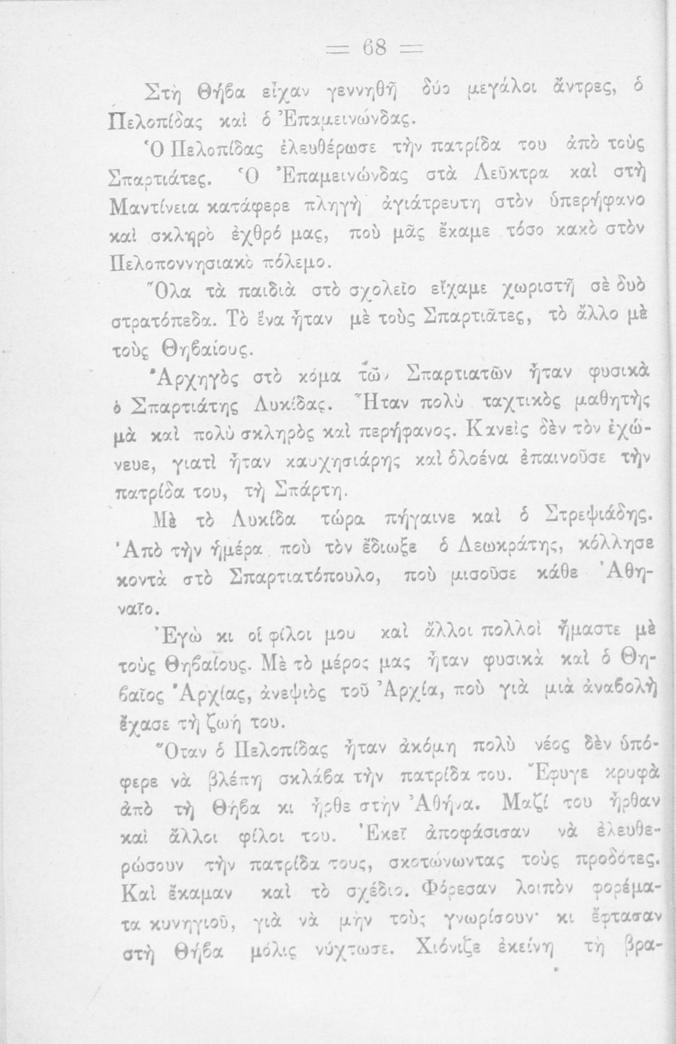 Αναγνωστικό Δ' Δημοτικού για το μάθημα της Γλώσσας. Περιέχει πεζά και ποιήματα, με περιεχόμενο πατριωτικό και ηθικοπλαστικό. Η γλώσσα είναι δημοτική και το ύφος είναι απλό. Περιέχει εικόνες, οι οποίες οπτικοποιούν τα κείμενα. Στο τέλος έχει παρτιτούρες.