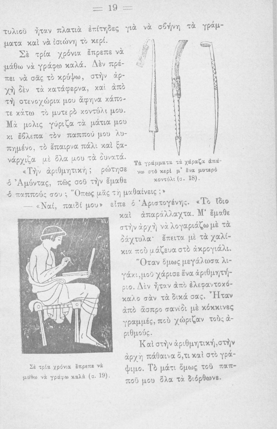 Αναγνωστικό Δ' Δημοτικού για το μάθημα της Γλώσσας. Περιέχει πεζά και ποιήματα, με περιεχόμενο πατριωτικό και ηθικοπλαστικό. Η γλώσσα είναι δημοτική και το ύφος είναι απλό. Περιέχει εικόνες, οι οποίες οπτικοποιούν τα κείμενα. Στο τέλος έχει παρτιτούρες.