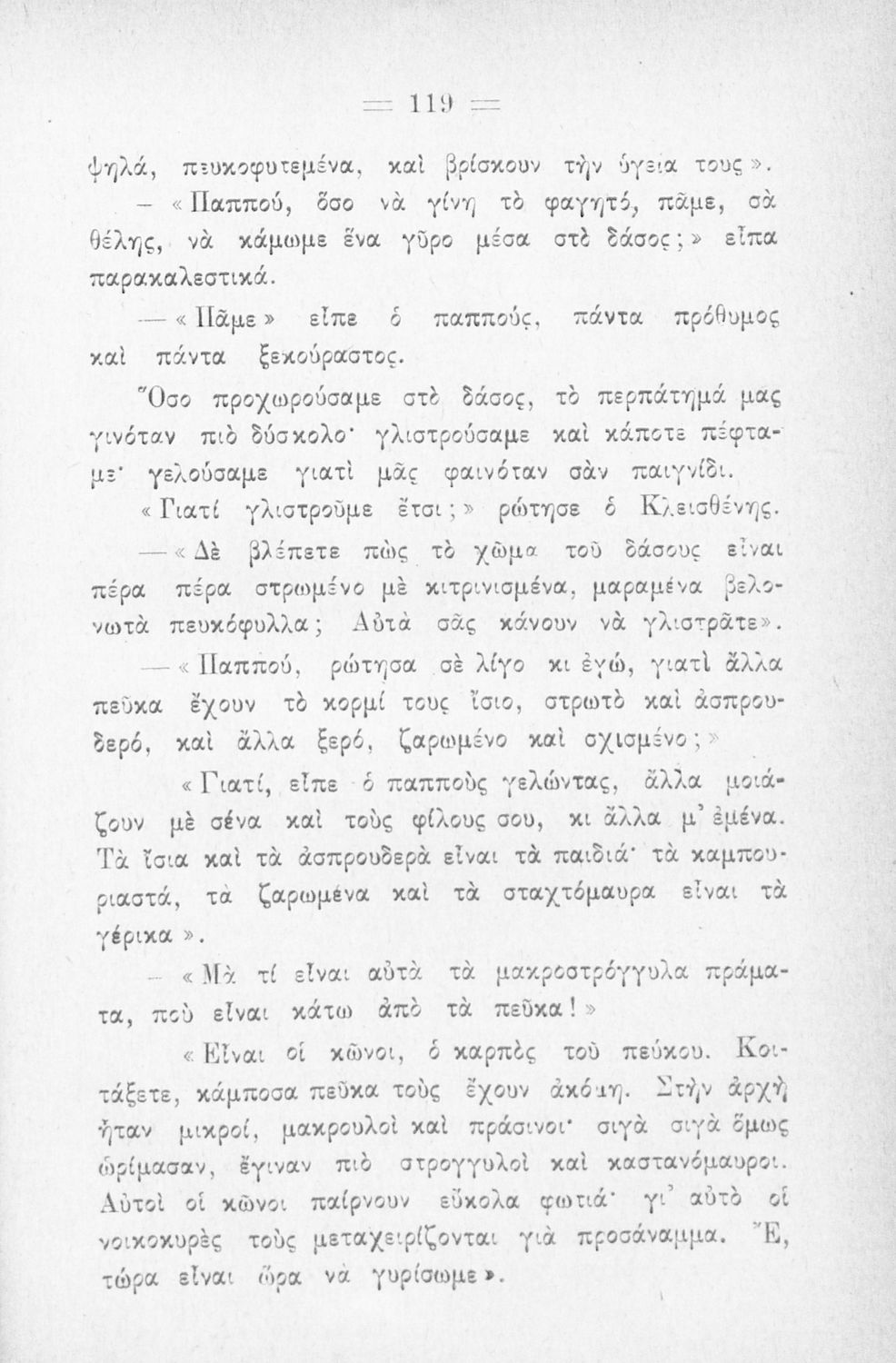 Αναγνωστικό για την Δ΄ Δημοτικού. Περιλαμβάνει πεζά κείμενα από την αρχαία εποχή με θέματα κυρίως για την φύση. Από το βιβλίο λείπουν οι πρώτες και οι τελευταίες σελίδες.