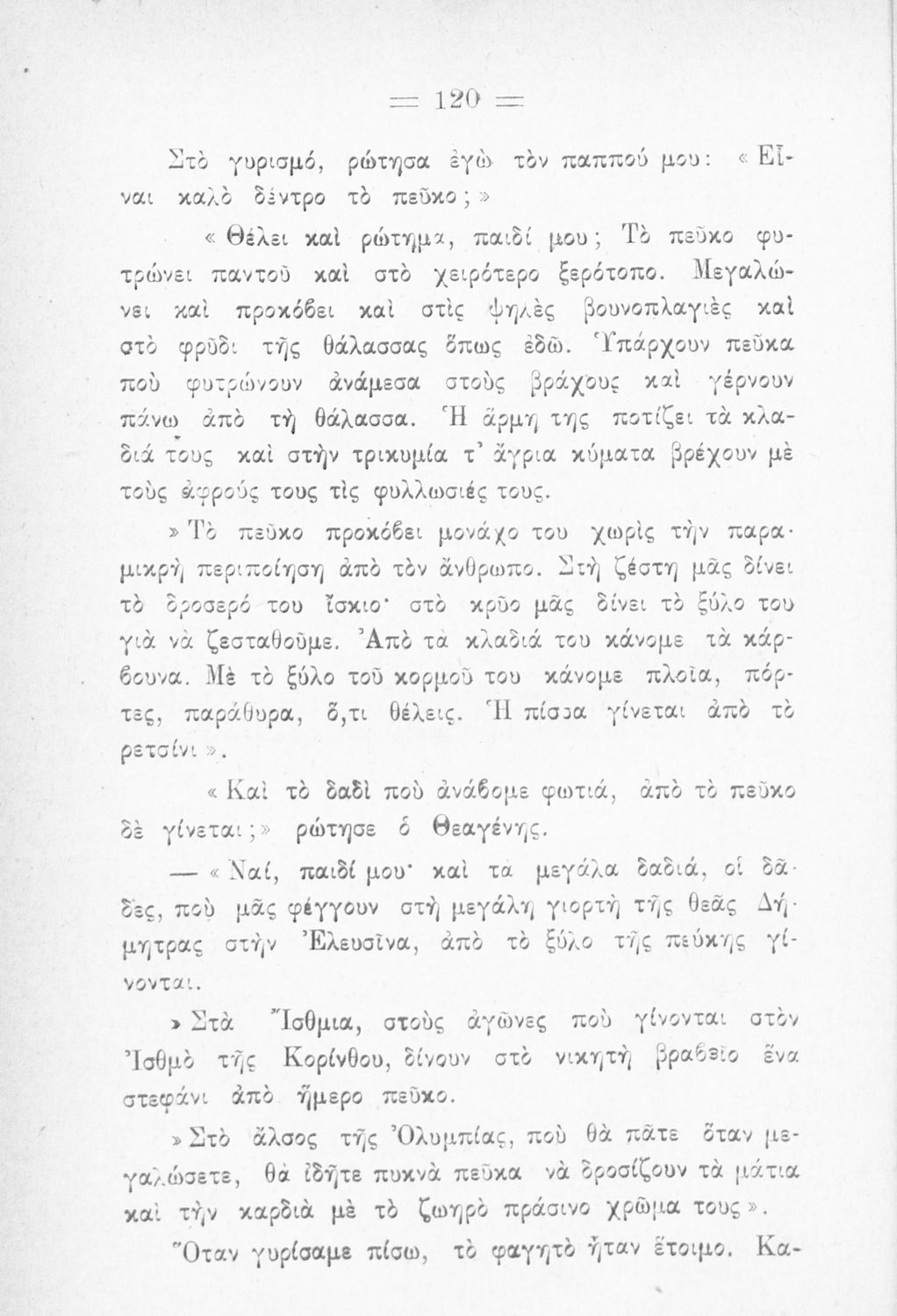 Αναγνωστικό Δ΄ Δημοτικού που περιέχει πεζά και ποιήματα εμπνευσμένα από την ελληνική ιστορία και μυθολογία, την κοινωνική ζωή και την ελληνική φύση.