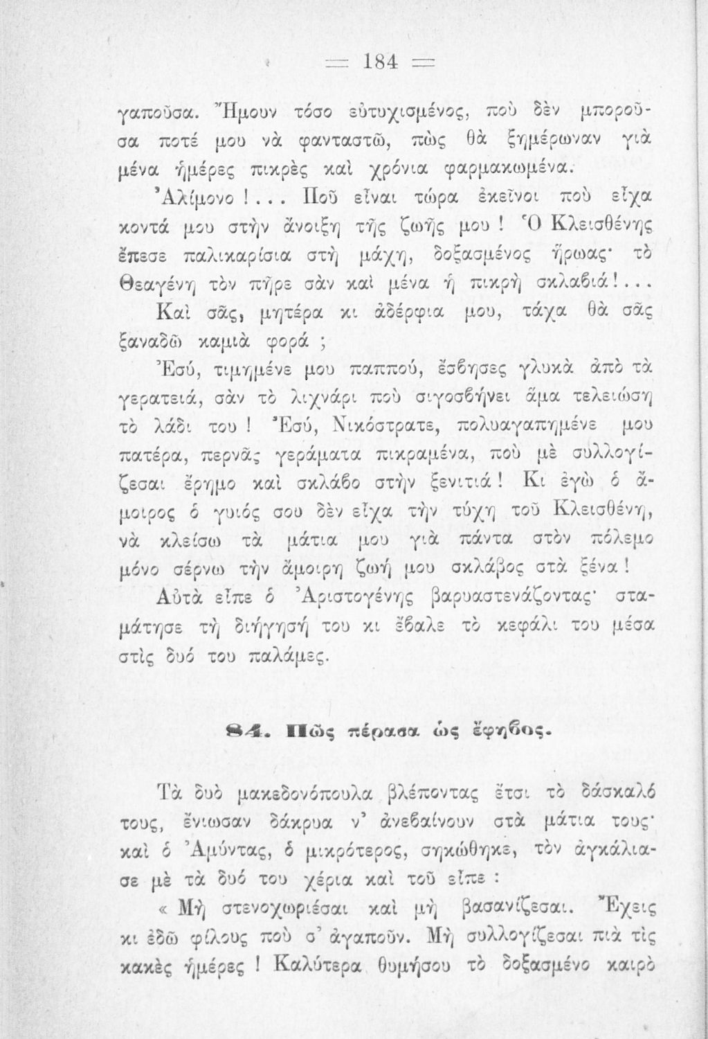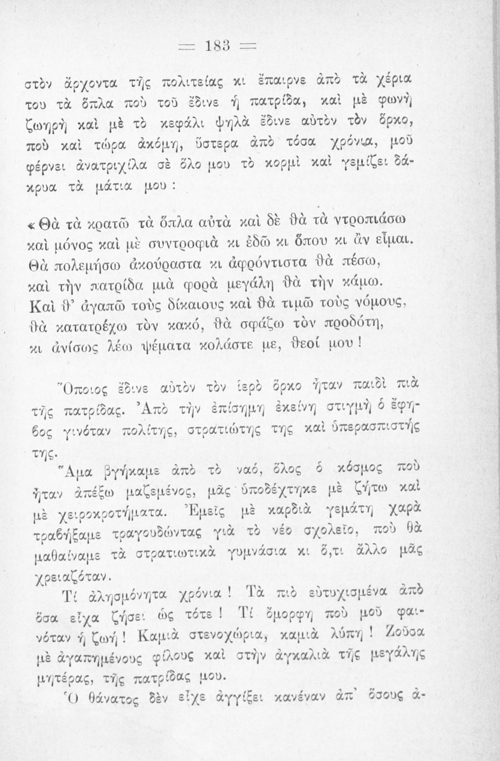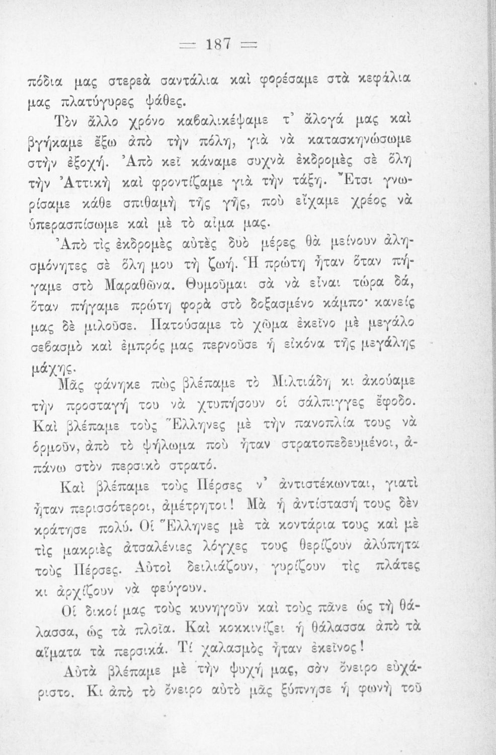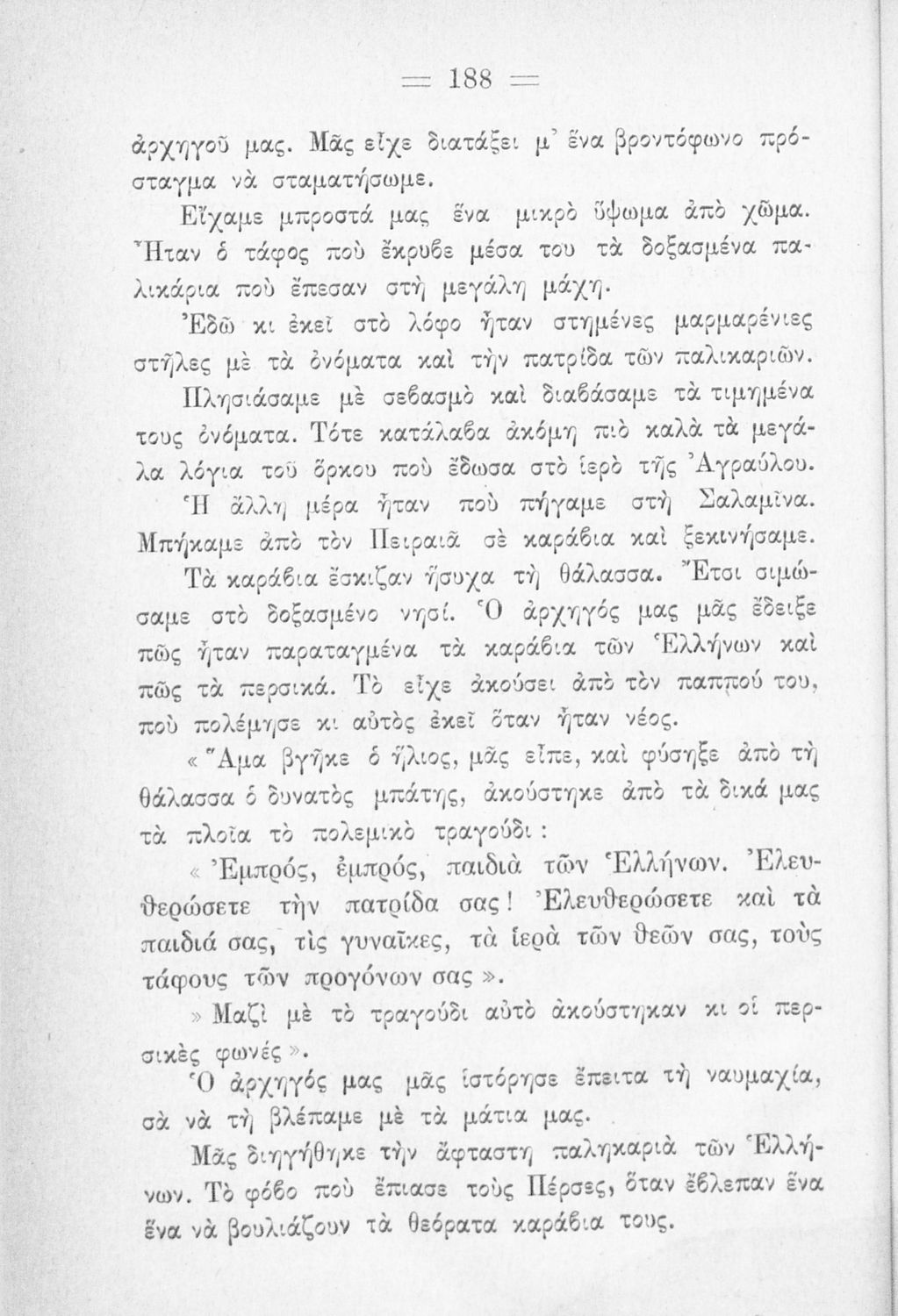 Αναγνωστικό Δ΄ Δημοτικού που περιέχει πεζά και ποιήματα εμπνευσμένα από την ελληνική ιστορία και μυθολογία, την κοινωνική ζωή και την ελληνική φύση.