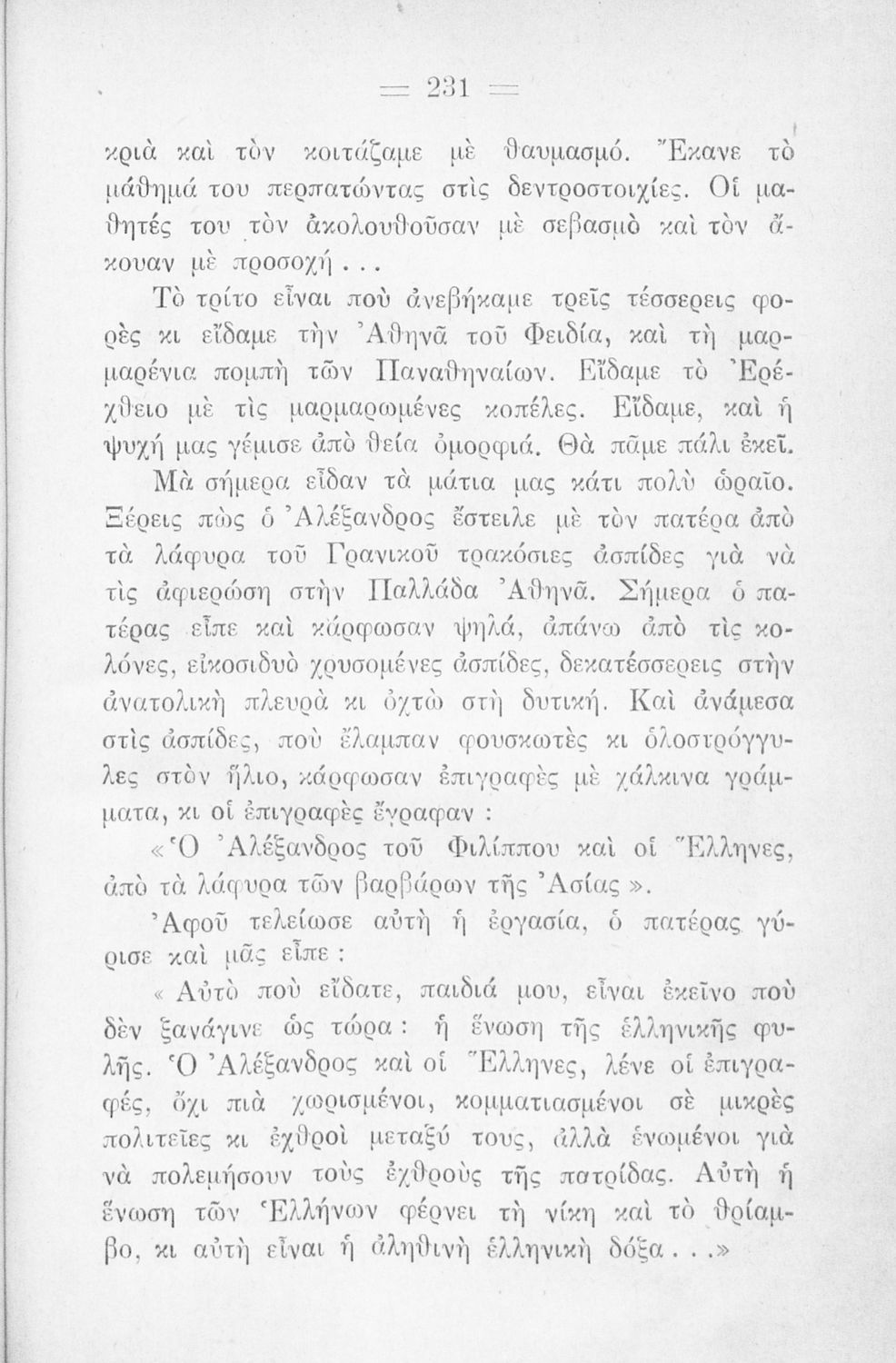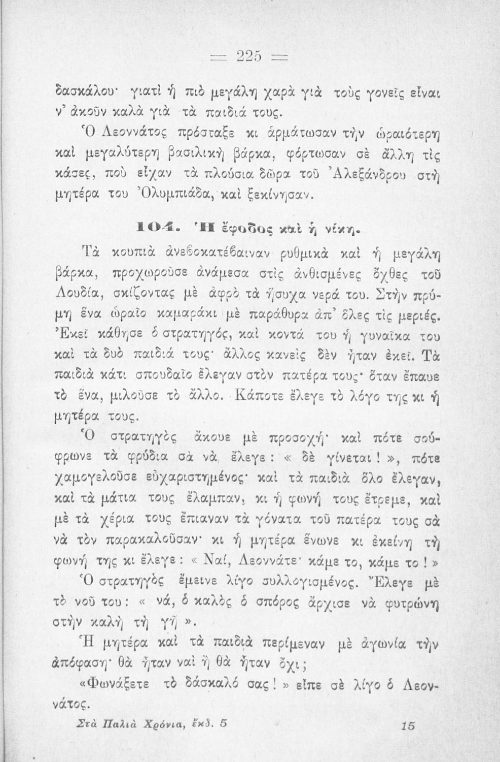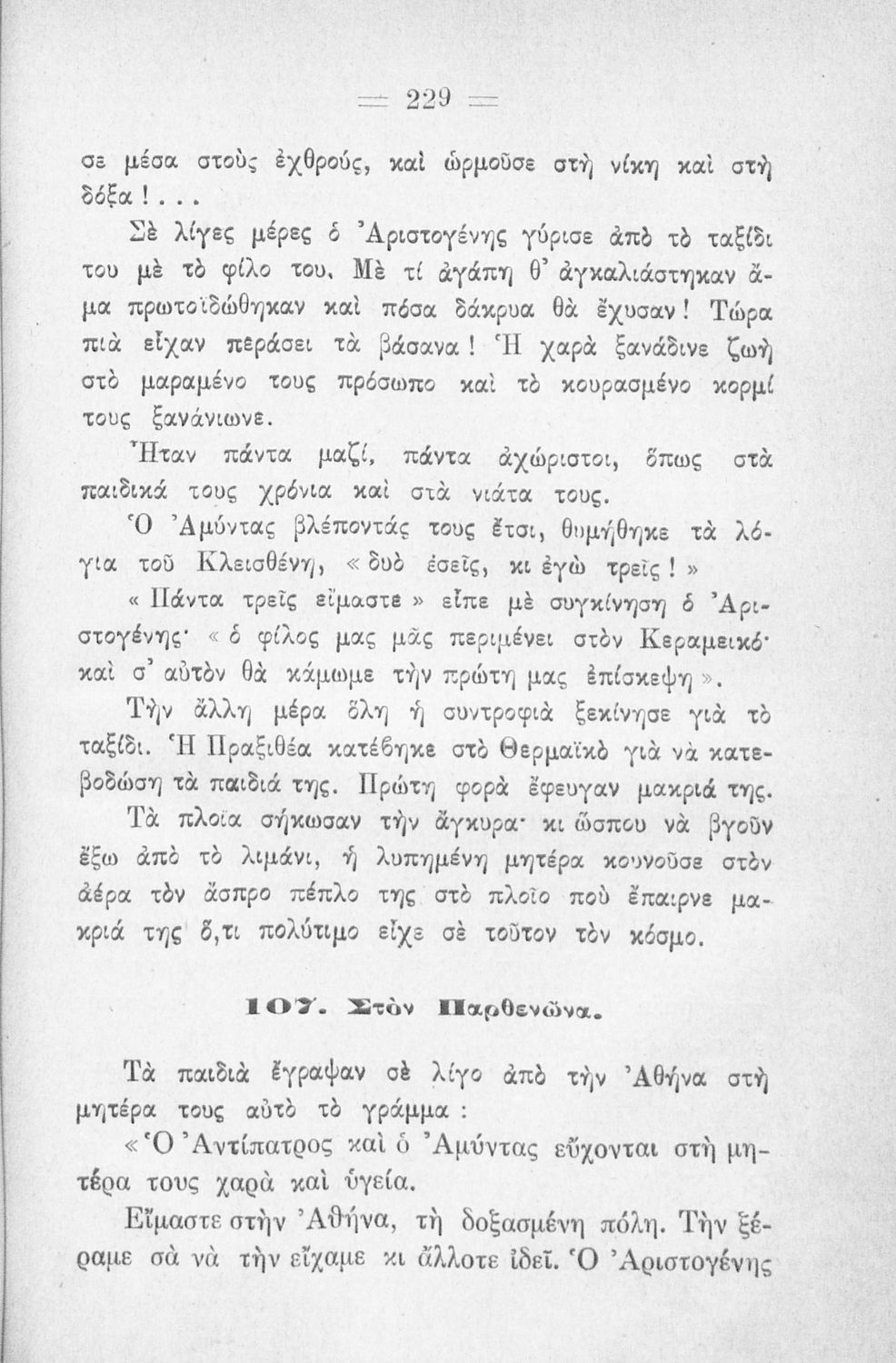 Αναγνωστικό Δ' Δημοτικού για το μαθήματα της Γλώσσας. Περιλαμβάνει πεζά και ποιήματα με περιεχόμενο από την οικογενειακή και κοινωνική ζωή. Τα ποιήματα έχουν εθνικό και πατριωτικό περιεχόμενο. Στο τέλος του βιβλίου υπάρχουν παρτιτούρες τραγουδιών.
