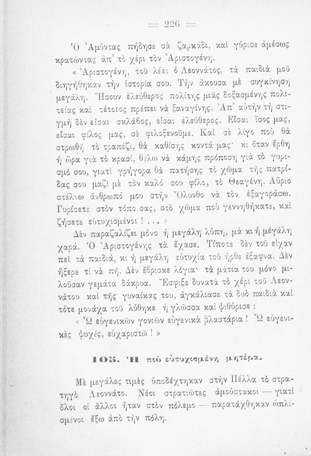 LDR 01315 2200205 4500 035 ## _a03-20561301 040 ## _aΒιβλιοθήκη της Βουλής των Ελλήνων 041 ## _ael 100 ## _aΑ. Κουρτίδης _aΓ. Κονιδάρης 110 ## _a20561301 245 0# _aΣτα παλαιά χρόνια. Αναγνωστικό Δ΄ Δημοτικού 250 ## _a5η Έκδοση 260 ## _aΑθήνα _bΙωάννης Δ. Κολλάρος και ΣΙΑ, Βιβλιοπωλείο της "Εστίας" _c1925 300 ## _a256 _bΣκίτσα, εικόνες (ασπρόμαυρα) 520 ## _aΑναγνωστικό Δ' Δημοτικού για το μαθήματα της Γλώσσας. Περιλαμβάνει πεζά και ποιήματα με περιεχόμενο από την οικογενειακή και κοινωνική ζωή. Τα ποιήματα έχουν εθνικό και πατριωτικό περιεχόμενο. Στο τέλος του βιβλίου υπάρχουν παρτιτούρες τραγουδιών. 521 ## _aΔ' Δημοτικού 522 ## _aΕλλάδα 546 ## _aΔημοτική 563 ## _aΣκληρό Εξώφυλλο 650 #4 _aΓλώσσα _aΔιηγήματα _aΠατρίδα _aΠεζά _aΠοιήματα _aΤραγούδια
